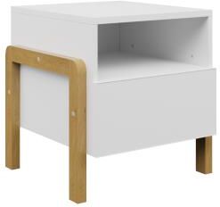 Prosty design wzorowany naturą, podkreśla ich charakter i wzbogaca nutą elegancji. Victor to stylowa kolekcja pełna lekkości, dzięki której zaaranżowanie dziecięcego wnętrza stanie się przyjemnością. Projekt nie tylko spełnia funkcję estetyczną, ale przede wszystkim daje przestrzeń użytkową. Mebel daje możliwość przechowywania na górnej części szafki oraz na półce nieco niżej, która jest idealnym miejscem na poręczne przedmioty. Całość gwarantuje świetne dopełnienie wyposażenia sypialni. Materiałem tworzącym mebel jest certyfikowana, laminowana płyta meblowa 18mm o wykończeniu białym. Wykorzystanie lakierowanych, podwyższanych nóg dębowych jest minimalistycznym rozwiązaniem dającym efekt przytulnego wnętrza. Dane techniczne: Wysokość: 45 cm Szerokość: 46 cm Głębokość: 40 cm