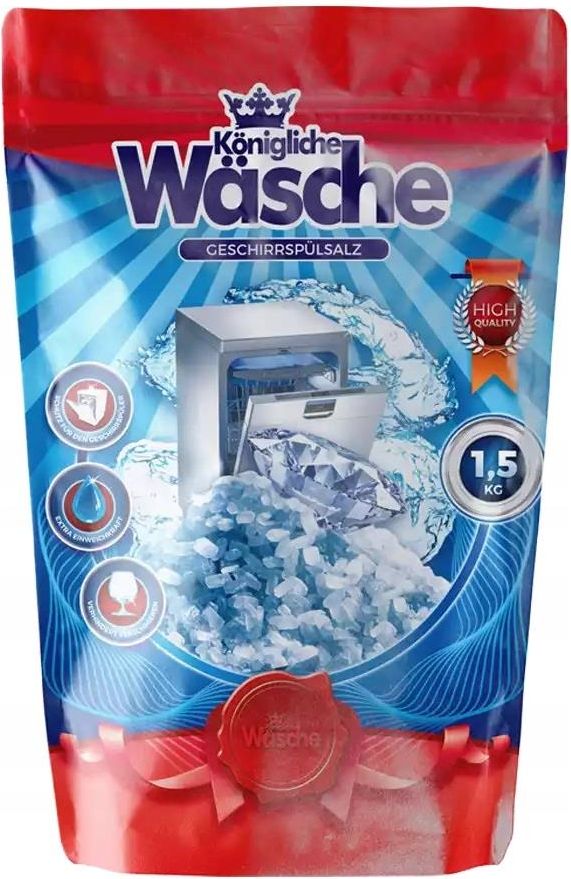 Königliche Wäsche Sól do zmywarki gruboziarnista 1,5 kg to wysokiej jakości sól, która pozwala na efektywne działanie zmywarki. Dzięki specjalnej formule, sól ta zapewnia skuteczne usuwanie kamienia i innych osadów, które powstają podczas mycia naczyń w zmywarce. Produkt ten został stworzony z myślą o wymagających klientach, którzy cenią sobie nie tylko skuteczność, ale także łatwość użycia oraz oszczędność czasu. Cechy produktu Königliche Wäsche Sól do zmywarki gruboziarnista 1,5 kg: Rodzaj: Sól do zmywarki Skuteczność: Königliche Wäsche Sól do zmywarki gruboziarnista 1,5 kg jest wyjątkowo skuteczna w usuwaniu kamienia i innych osadów z zmywarki. Dzięki regularnemu stosowaniu, zmywarka działa z większą wydajnością, a naczynia są dokładnie czyszczone. Łatwość użycia: Sól do zmywarki Königliche Wäsche jest bardzo łatwa w użyciu. Wystarczy dodać odpowiednią ilość soli do pojemnika w zmywarce i uruchomić program mycia. Sól ta jest odpowiednia do wszystkich rodzajów zmywarek. Oszczędność czasu: Stosowanie soli do zmywarki pozwala na oszczędność czasu podczas mycia naczyń. Dzięki temu, że zmywarka działa z większą wydajnością, cykle mycia są krótsze. Wysoka wydajność: Opakowanie 1,5 kg soli do zmywarki Königliche Wäsche pozwala na długi czas użytkowania, dzięki czemu klient nie musi często dokonywać zakupów. Gruboziarnista struktura: Sól do zmywarki Königliche Wäsche ma gruboziarnistą strukturę, co pozwala na łatwiejsze rozpuszczanie się i skuteczniejsze usuwanie osadów z zmywarki. Königliche Wäsche Sól do zmywarki gruboziarnista 1,5 kg to wysokiej jakości produkt, który łączy w sobie skuteczność, łatwość użycia oraz oszczędność czasu. To idealna opcja dla osób, które cenią sobie wysoką jakość i wygodę użytkowania. Stosowanie soli do zmywarki Königliche Wäsche pozwala na skuteczne usuwanie kamienia i innych osadów, dzięki czemu zmywarka działa z większą wydajnością.