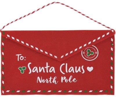 Filcowa koperta świąteczna do Świętego Mikołaja marki KOOPMAN, zamykana na rzep wyposażona w sznureczek do zawieszenia.