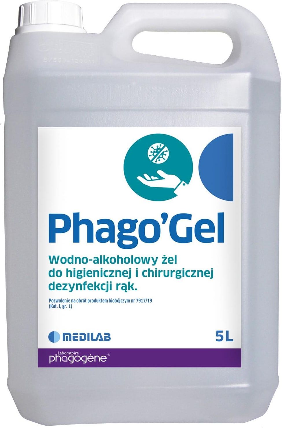 Medilab Phago'Gel Kanister 5L Żel Do Dezynfekcji Rąk Higienicznej I Chirurgicznej Węgorzyno
