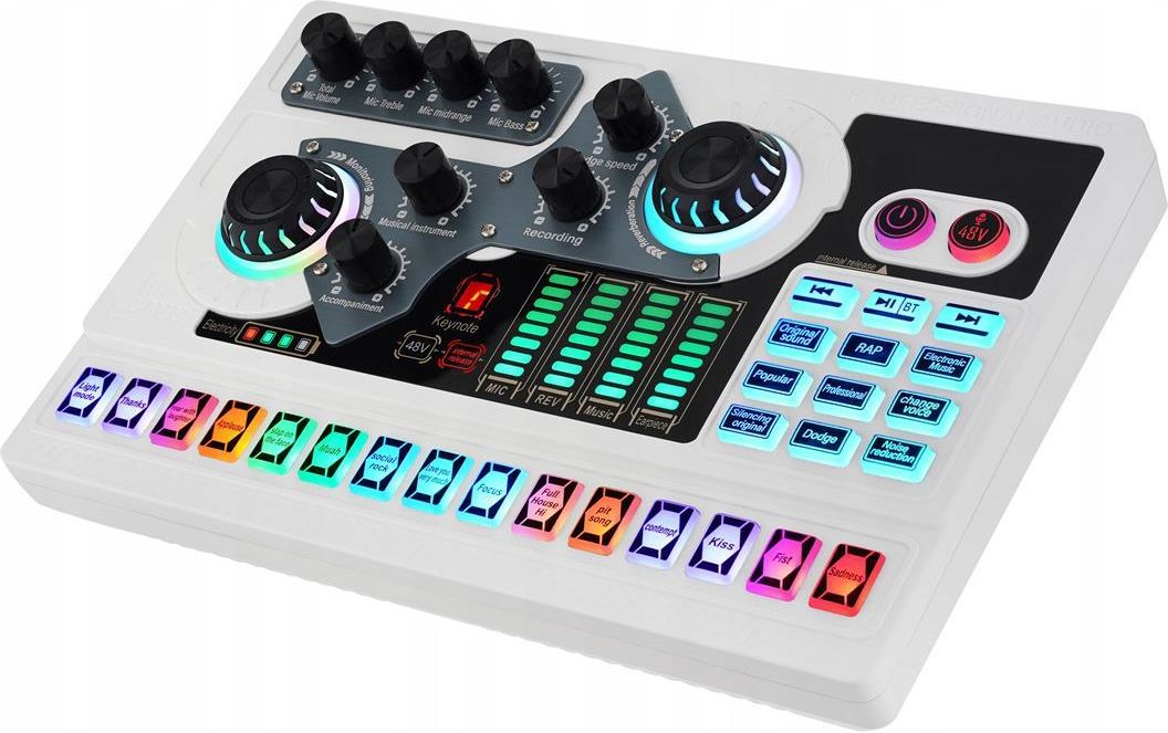 Zestaw do streamingu i karaoke MusicMate MM-SD250 VibeCast Kolor: Wielokolorowy Gniazda wejściowe: 1 x Aux, Instrumentalne Jack 6.3 mm, Mikrofonowe Jack 3.5 mm, Mikrofonowe Jack 6.3 mm, Mikrofonowe XLR Phantom +48V, OTG USB-C Gniazda wyjściowe: 2 x Live, Słuchawkowe (Jack 3.5mm) Wyjście słuchawkowe: Tak Wejście mikrofonowe: Tak Szerokość [cm]: 22.5 Zestaw MUSICMATE MM-SD250 VibeCast to zaawansowane narzędzie do streamingu i karaoke, zaprojektowane z myślą o twórcach internetowych, muzykach i podcasterach. Urządzenie oferuje aż 30 efektów dźwiękowych, obsługę mikrofonów z zasilaniem Phantom +48V, wejścia instrumentalne oraz szeroki zakres portów – w tym OTG i USB-C do PC i smartfonów. W zestawie znajduje się pojemnościowy mikrofon z uchwytem antywstrząsowym, statywem z regulacją wysokości, kompletem kabli oraz osłoną mikrofonu. Kompaktowa, ale funkcjonalna konstrukcja w kolorowej obudowie łączy się z wieloma źródłami dźwięku i umożliwia płynne przełączanie między nagrywaniem, odsłuchem i transmisją. To idealne rozwiązanie dla każdego, kto potrzebuje mobilnego i profesjonalnego centrum audio. Specyfikacja techniczna Głębokość: 5,5 cm Gniazda wejściowe: mikrofonowe XLR Phantom +48V, instrumentalne Jack 6.3 mm, mikrofonowe Jack 6.3 mm, mikrofonowe Jack 3.5 mm, AUX Jack 3.5 mm, OTG USB-C, PC Live USB-C Gniazda wyjściowe: słuchawkowe Jack 3.5 mm, głośnikowe Jack 3.5 mm, 2x Live Streaming Jack 3.5 mm, PC Live USB-C Funkcje: nagrywanie i streaming, 30 efektów dźwięku, Bluetooth, AUX Kolor: wielokolorowy Wejście mikrofonowe: tak Wyjście słuchawkowe: tak Wyposażenie: kabel USB-A – USB-C, kabel USB-C – USB-C, kabel AUX Jack 3.5 mm, mikrofon pojemnościowy, uchwyt antywstrząsowy, statyw mikrofonowy z regulacją wysokości, kabel mikrofonowy XLR – Jack 3.5 mm, osłona mikrofonu Wymiary: 22,5 × 15 × 5,5 cm Załączona dokumentacja: instrukcja obsługi w języku polskim, karta gwarancyjna