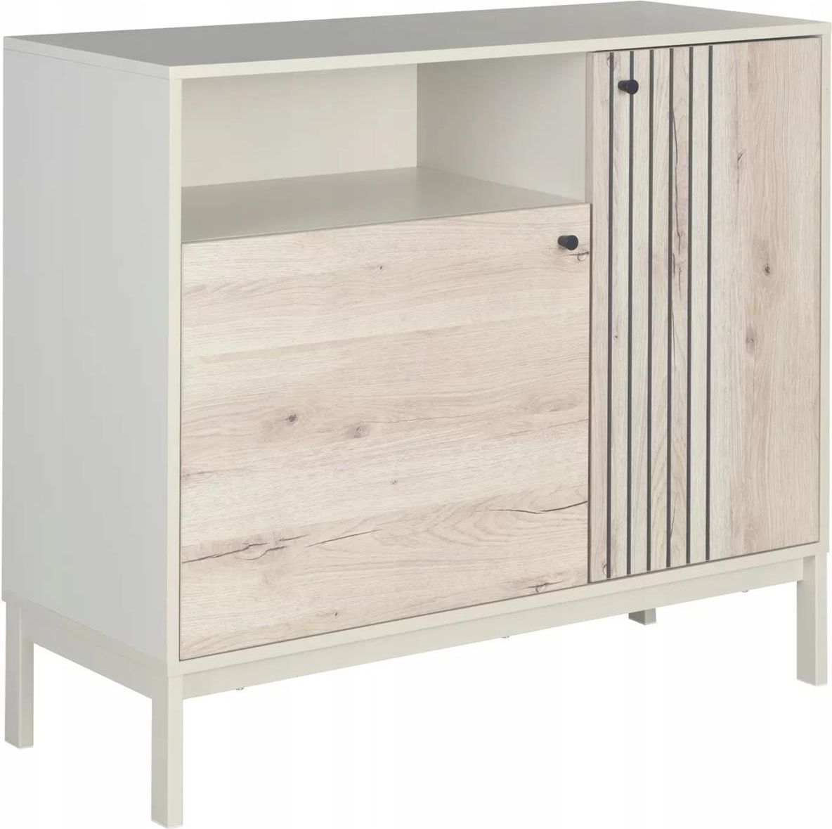 Komoda szafka do salonu lamele FROST K2 dąb alpejsk/biały SIGNAL Komoda FROST K2 to idealne połączenie minimalistycznego designu z praktycznymi rozwiązaniami do przechowywania. Połączenie ciepłego odcienia dębu z delikatną złamaną bielą tworzy harmonijną, nowoczesną całość o lekkim wizualnie …