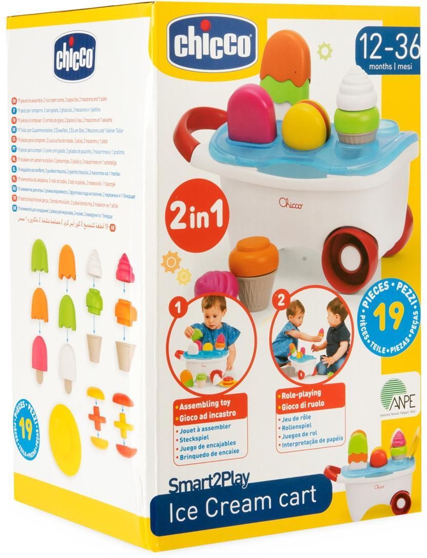 WÓZEK Z LODAMI - kreatywna zabawa dla małych fanów słodkości! Wózek z lodami to zabawka, która zapewni maluchom godziny radosnej i kreatywnej zabawy. Dzięki 19 elementom dzieci mogą tworzyć własne „lodowe" kompozycje, bawić się w sprzedawanie słodyczy i pchać wózek niczym prawdziwy sprzedawca lodów. Zabawka rozwija wyobraźnię, zdolności manualne i umiejętność logicznego myślenia, jednocześnie zapewniając bezpieczną rozrywkę. Najważniejsze funkcje zabawki Zabawa 2w1: - Kreatywna zabawa w układanie i tworzenie smakołyków. Zabawa w odgrywanie ról - maluchy mogą udawać sprzedawców lodów i poruszać wózkiem. Bogaty zestaw z 19 elementami: - 2 rożki, 4 smaki lodów, 2 patyczki do lizaków, 4 smaki lizaków, 3 ciasteczka makaronik z 2 nadzieniami, 1 talerzyk. Praktyczna konstrukcja: - Lekki wózek z wolnymi kołami i praktycznym uchwytem. Przezroczysta pokrywka umożliwia przechowywanie wszystkich słodyczy w środku. Rozwój dziecka Stymulacja logicznego myślenia: Układanie różnych kombinacji smakołyków rozwija wyobraźnię i logiczne myślenie. Rozwój umiejętności manualnych: Łatwe do uchwycenia elementy wspierają rozwój zdolności manualnych. Bezpieczne materiały Elementy wykonane bez użycia farb, co czyni zabawkę w pełni bezpieczną dla najmłodszych. Wózek z lodami to idealna zabawka dla dzieci w wieku 12-36 miesięcy, która zachęca do kreatywności i odgrywania ról. Lekka konstrukcja wózka pozwala na zabawę zarówno w domu, jak i na spacerze. Bogaty zestaw akcesoriów, takich jak rożki, lizaki, makaroniki i talerzyk, zapewnia różnorodność zabawy, a przy tym wspiera rozwój zdolności manualnych i logicznego myślenia. Bezpieczne materiały, brak farb i przemyślana konstrukcja czynią WÓZEK Z LODAMI idealnym wyborem na prezent dla najmłodszych. Zabawka od Chicco dostarcza radości i stymuluje rozwój, zapewniając niezapomniane chwile zabawy! Grupa wiekowa: 12-36 M