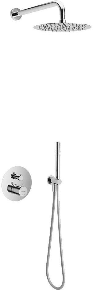 EXCELLENT Pi zestaw prysznicowo-wannowy termostatyczny Podtynkowy, termostatyczny system prysznicowo-wannowy EXCELLENT Pi z baterią podtynkową, deszczownicą i słuchawką, wyposażony w niezbędne akcesoria. Najważniejsze cechy produktu nowoczesny zestaw prysznicowo-wannowy przeznaczony do montażu podtynkowego ergonomiczna bateria termostatyczna z przełącznikiem mechanicznym umożliwiającym wybór jednego z trzech odbiorników wody wyposażona w ceramiczną, termostatyczną głowicę Vernet, pozwalającą na precyzyjne ustawienie wybranej temperatury wody 1-funkcyjna, okrągła deszczownica o wymiarach Ø 250 mm wyposażona wsystem Pure-Calc, czyli silikonowe wypustki, które zapobiegają osadzaniu się kamienia i ułatwiają czyszczenie ramię do deszczownicy o długości 40 cm, przeznaczone do montażu ściennego funkcjonalna słuchawka prysznicowa wraz z uchwytem oraz przyłączem wody ergonomiczny wąż prysznicowy o długości 150 cm bateria wyposażona w element podtynkowy Fix-box, zapewniający szybki i stabilny montaż oraz umożliwiający stały dostęp rewizyjny do mechanizmu baterii armatura wykonana z trwałego i wytrzymałego mosiądzu chromowa powłoka zapewniająca połysk i ochronę armatury przed korozją ciśnienie wody regulowane jest za pomocą uchwytu przełącznika minimalistyczny design uniwersalny dla każdego wnętrza Specyfikacja techniczna produktu Identyfikator produktu: 29701 Seria: Pi Nr katalogowy: AREX.SET.1248CR Rodzaj montażu: podtynkowy Rodzaj zestawu podtynkowego: wannowy, prysznicowy Rodzaj przyłączy: G 1/2" Kształt deszczownicy/dyszy: okrągła Rodzaj słuchawki: jednostrumieniowa Rodzaj zestawu prysznicowego: punktowy Zestaw natryskowy: tak Bateria w komplecie: tak Wymiary rozety: Ø180 mm Wymiary słuchawki: Ø 25x188 mm Długość węża: 1500 mm Zasięg ramienia: 400 Rozmiar deszczownicy: Ø 250 mm Materiał wykonania armatury: mosiądz Wykończenie armatury: chrom Sterowanie: osobna dźwignia Rodzaj głowicy: termostatyczna, ceramiczna Zastosowane rozwiązania technologiczne: system Pure-Calc, system Fix-box Ilość obsługiwanych odbiorników: 3 Stylistyka: nowoczesna