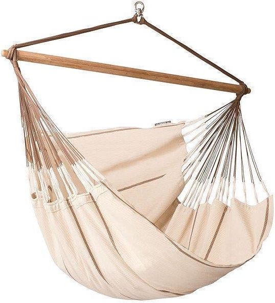 Fotel hamakowy Habana C210, ecru HAL21 (Fotele hamakowe) KOLUMBIJSKIE BARWY SZCZĘŚCIA Fotele hamakowe z kolekcji Habana cieszą się szczególną sympatią. Jest to zasługa wyjątkowo przyjemnego w dotyku materiału z którego są wykonane, a także jego przewiewności i ciekawej faktury. Dzięki najwyższej jakości technice koloryzacji Ciba-colours, materiał jest nie tylko olśniewająco piękny, ale także gwarantuje wysoką odporność na płowienie koloru i jest bardzo łatwy w czyszczeniu. Wysoka Jakość Bawełny Do produkcji foteli hamakowych La Siesta używamy wyłącznie prawdziwej, nie przetwarzanej bawełny, z długimi włóknami. Nasza bawełna nie posiada meszku, nie rwie się i jest bardzo wytrzymała. Kolor brązowo-biały dostępny w połowie lipca 2020. Produkt wyróżniaja się wysoką jakością wykonania, która widoczna jest już na pierwszy rzut oka. Zastosowanie starannie dobranych materiałów oraz dbałość o każdy detal sprawiają, że łączy w sobie trwałość, estetykę i komfort użytkowania. Dzięki precyzyjnemu wykonaniu oraz solidnym wykończeniom, produkt zachowuje swój wygląd i funkcjonalność przez długi czas. Producent przykłada dużą wagę do jakości użytych tkanin, mocowań i szwów, co przekłada się na odporność na codzienne użytkowanie oraz czynniki zewnętrzne. Połączenie estetycznego wzornictwa z trwałością i wygodą sprawia, że asortyment spełnia oczekiwania nawet najbardziej wymagających użytkowników, ceniących sobie zarówno komfort, jak i solidne wykonanie.