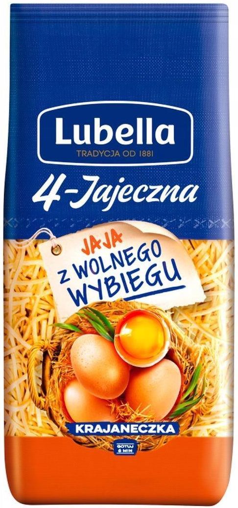 Lubella 4-Jajeczna Makaron Krajaneczka 200 G ❤️ Lubella ❤️ ✔️ Na nowo wałkujemy tradycję.Makaron delikatny tak jak z kuchni Twojej Babci, trzy razy wałkowany. Lubella Tradycja od 1881 jaja z wolnego wybiegu. Polski Producent ✔️ Termin ważności: Przechowuj w suchym i chłodnym miejscu. Produkt …