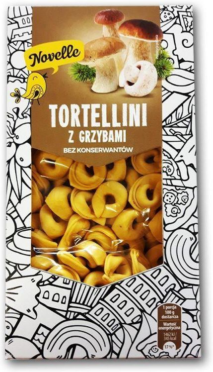 KARTON ZBIORCZY ZAWIERA - 12 SZTUKMakaron tortellini z nadzieniem pieczarkowym z dodatkiem suszonych grzybów leśnychPrzechowywać w suchym i chłodnym miejscu