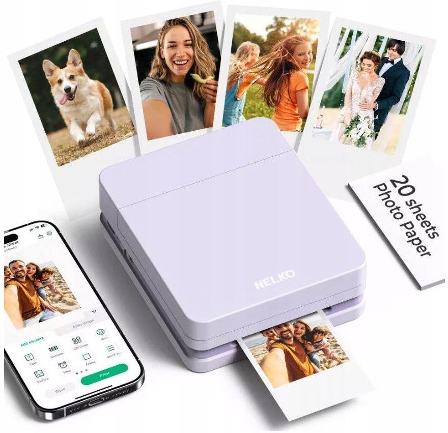 NELKO PP03 – Kieszonkowa drukarka do kolorowych zdjęć ?600DPI - Doskonała jakość wydruku W zestawie 20 szt. papieru na pierwsze 20 zdjęć natychmiastowych oraz kartridż z kolorowym tuszem 3x 3g pozwalający na wydruk 100 zdjęć. ?NELKO PP03 to nowoczesna, przenośna drukarka atramentowa, która pozwala w kilka chwil zamienić cyfrowe wspomnienia w prawdziwe, kolorowe fotografie. Stylowa, kompaktowa i intuicyjna w obsłudze – idealna do domu, w podróży, na imprezy, do scrapbookingu i kreatywnych projektów. Wystarczy smartfon, aplikacja i chwila, aby cieszyć się wydrukiem zdjęcia dokładnie wtedy, gdy masz na to ochotę. ?NELKO PP03 to klasyczna drukarka atramentowa w miniaturowym wydaniu i z łącznością bezprzewodową. Możliwość łączenia się przez bluetooth z telefonami / tabletami (Android lub iOS) inatychmiastowy wydruk bez dodatkowych urządzeń. Kolorowy druk atramentowy w najwyższej jakości 600 dpi Kompaktowy, kieszonkowy format – idealna w podróży Wbudowany akumulator 800 mAh – do 60 wydruków na jednym ładowaniu Druk zdjęć w rozmiarze 45 × 60 mm Prosta obsługa i szybki druk – 60 mm/s Ładowanie przez port USB-C Nowoczesny design Możliwość pracy podczas ładowania Produkt firmy: NELKO Model: PP03 Kolor: Fioletowy Kolorowe zdjęcia zawsze tam, gdzie Ty NELKO PP03 to drukarka stworzona z myślą o mobilności. Jej niewielkie wymiary (108 × 129 × 40,5 mm) sprawiają, że bez problemu zmieści się w torbie, plecaku czy szufladzie. Dzięki niej możesz drukować zdjęcia w dowolnym miejscu – w domu, na wakacjach, podczas spotkań z przyjaciółmi czy rodzinnych uroczystości. Poniżej prezentujemy link do filmu na Youtube pokazującego działanie drukarki https://youtube.com/shorts/McgeLuJryGI?si=PX8kjUUbrS426Vmz Wysoka jakość druku atramentowego NELKO PP03 może poszczycić się niezwykle wysoką jakością wydruku, niespotykaną wśród drukarek mobilnych. Wszystko dzięki temu że w drukarce zastosowano klasyczny druk atramentowy, a nie termiczny. Drukarka wykorzystuje technologię atramentową, zapewniając żywe kolory, dobre nasycenie i szczegółowość obrazu. Dodatkowo znakomita rozdzielczość 600 dpi sprawia, że zdjęcia są wyraźne i estetyczne, idealne do albumów, ramek, planerów czy projektów DIY. Najprościej ujmując NELKO PP03 to klasyczna drukarka atramentowa tylko w miniaturowym wydaniu. Zarówno atrament jak i papier można uzupełniać niezależnie, tak jak w klasycznej drukarce atramentowej. Jak skończy się tusz wymieniamy jedynie kartridż, a dopóki mamy tusz wystarczy uzupełniać papier i drukować. Łączność bluetooth NELKO PP03 łączy się z telefonem / smartfonem / tabletem za pomocą Bluetooth, bez konieczności używania kabli. Obsługuje zarówno Android, jak i iOS, co czyni ją uniwersalnym rozwiązaniem dla większości użytkowników. Wystarczy aplikacja mobilna, aby szybko wybrać zdjęcie i rozpocząć druk. Drukarka współpracuje z dedykowaną, bezpłatną aplikacją NELKO, dostępną na urządzenia mobilne. Aplikacja NELKO – kreatywne centrum Twojej drukarki Drukarka NELKO PP03 współpracuje z dedykowaną aplikacją mobilną NELKO, dostępną dla urządzeń z systemem iOS i Android, która całkowicie zmienia sposób, w jaki projektujesz i drukujesz swoje zdjęcia. Aplikacja łączy w sobie pełną funkcjonalność edycyjną, intuicyjny interfejs i zaawansowane narzędzia kreatywne, dzięki czemu każde zdjęcie może stać się wyjątkową odbitką lub piękną pamiątką. Interfejs aplikacji został zoptymalizowany pod kątem szybkości i wygody – jest nowoczesny, przejrzysty i łatwy w obsłudze nawet dla początkujących użytkowników. Po sparowaniu drukarki z telefonem przez Bluetooth 5.0 możesz od razu rozpocząć kreatywną pracę z Twoimi zdjęciami i projektami. Bogate narzędzia edycyjne Aplikacja oferuje pełną gamę narzędzi do edycji zdjęć przed wydrukiem, dzięki czemu każdy wydruk wygląda dokładnie tak, jak tego chcesz. W aplikacji możesz: dodawać filtry kolorystyczne, stosować korekcję jasności, kontrastu i nasycenia, dopasowywać ramki, obramowania i efekty graficzne, tworzyć kolaże i unikalne projekty zdjęciowe, wstawiać napisy, naklejki, emotikony i personalizowane elementy. Kreatywność dzięki AI i szablonom NELKO oferuje także bibliotekę gotowych szablonów, które można wykorzystać do szybkiej edycji zdjęć lub projektów graficznych. Aplikacja regularnie aktualizuje zasoby, aby dostarczać coraz więcej inspiracji do kreatywnego druku. Dodatkowo najnowsze wersje aplikacji wspierają funkcje generowania obrazów z użyciem sztucznej inteligencji czy narzędzia do szybkiego wycinania elementów graficznych, co znacząco poszerza możliwości twórcze użytkownika. Prosta obsługa i szybkie drukowanie Cały proces — od wyboru zdjęcia po wydruk — został maksymalnie uproszczony. W aplikacji możesz: zaimportować zdjęcie z galerii telefonu, edytować je za pomocą narzędzi kreatywnych, podglądać efekty w czasie rzeczywistym, wysłać do drukarki i wydrukować w mniej niż 60 sekund. Dzięki aplikacji Nelko nawet skomplikowane projekty wyglądają profesjonalnie, a edycja zdjęć odbywa się bez konieczności używania innych programów. To sprawia, że drukowanie zdjęć z NELKO PP03 jest nie tylko szybkie, ale też pełne kreatywnej frajdy – idealne do scrapbookingu, journalingu, prezentów czy pamiątek. Gotowa do działania w każdej chwili Wbudowany akumulator o pojemności 800 mAh pozwala na wydrukowanie co najmniej 60 zdjęć na jednym ładowaniu. Ładowanie odbywa się przez nowoczesne złącze USB-C, a diody LED (pomarańczowa, niebieska i biała) informują o statusie urządzenia. Drukarka może pracować podczas ładowania, dzięki czemu nie musimy kończyć pracy gdy się rozładuje akumulator a jedynie podłączyć do power banka i działać dalej. Przemyślana konstrukcja i łatwa obsługa Drukarka posiada wbudowan
