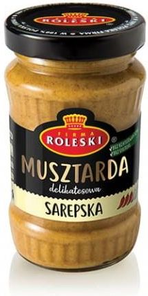 Musztarda Sarepska 175g PRODUKT NATURALNY, WYSOKIEJ JAKOŚCI Musztarda Sarepska to jedna z najbardziej popularnych na rynku musztard o lekko ostrym smaku. Musztarda Sarepska Roleski swój charakterystyczny aromat zawdzięcza specjalnej odmianie gorczycy oraz starannie dobranym przyprawom, które podkreślają jej jedyny w swoim rodzaju smak. Idealna konsystencja i wspaniała barwa sprawiają, że wyśmienicie nadaje się także do dekoracji potraw i przekąsek. Nie zawiera konserwantów, sztucznych barwników ani wzmacniaczy smaku. Bez glutenu. Produkt wyróżniony Nagrodą Kupców Polskich „Złoty Paragon 2011”. Wartości odżywcze w 100 g - 141 kcal/591 kJTłuszcz 5,9 gWęglowodany 16 g w tym cukry 10 g Białko 4,6 g Zawartość: Słoik zawiera 175g Musztardy Sarepskiej Skład: woda, gorczyca, ocet spirytusowy, cukier, sól, przyprawy, ekstrakt kurkumy. Sposób przechowywania: Produkt po otwarciu należy przechowywać w chłodnym miejscu.