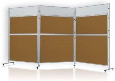 Zastosowanie: Idealna podczas wystaw i galerii zdjęć, rysunków, a także różnego rodzaju ogłoszeń. Mogą być również wykorzystane w miejscach, gdzie istnieje potrzeba fizycznego przedzielenia przestrzeni w estetyczny sposób. Tablica moderacyjna to konstrukcja do samodzielnego montażu, w dowolnej konfiguracji i według własnego uznania. Tablica dostępna jest w wersji o powierzchni suchościeralnej, korkowej lub tekstylnej. Rama wykonana z profilu aluminiowego w kolorze srebrnym, wykończona eleganckimi, popielatymi narożnikami. Panele przymocowane są do systemu za pomocą specjalnych, wytrzymałych uchwytów. Tablice dostępne są w różnych rozmiarach, dlatego też możliwe jest zawieszanie ich zarówno w pionie, jak i w poziomie – w zależności od potrzeb. Całość umocowana jest na specjalnych nogach, zapewniające stabilność systemu. W zestawie z nogą dołączane są stopki, zapewniające stabilność produktu. Powierzchnie: Uwaga! Istnieje możliwość zestawienia dowolnej ilości słupów i paneli, a także zakupienia kółek z hamulcem, zapewniające mobilność produktu.