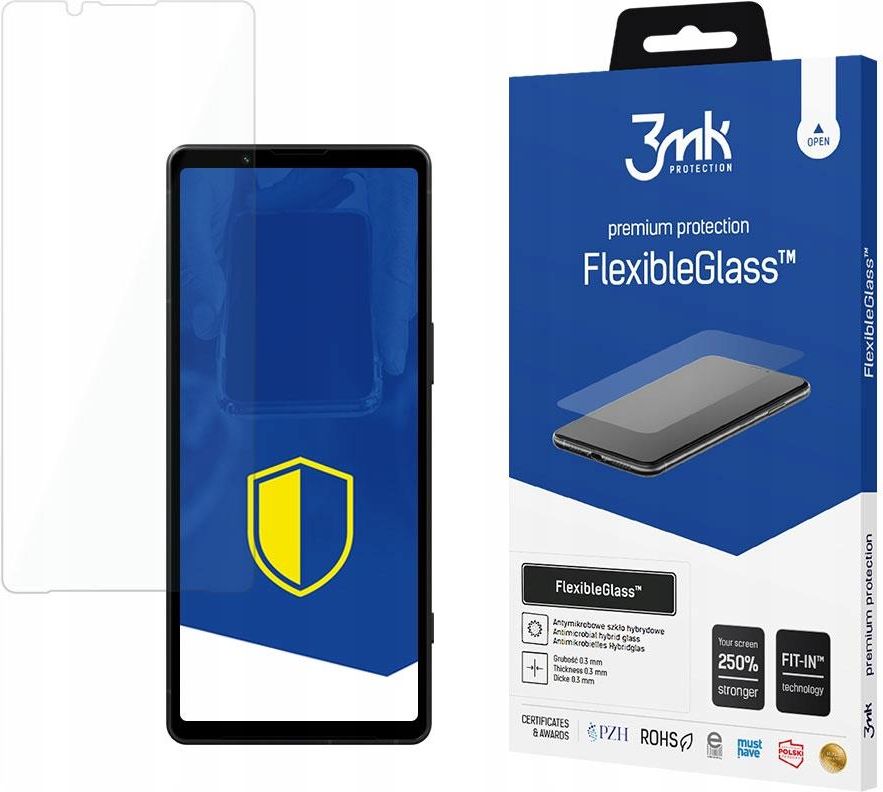 Szkło hybrydowe do Sony Xperia 5 V To nie Twój model? Kliknij tutaj by wybrać inny model Ochrona, której nie widać Wiemy, że oryginalny wygląd smartfona jest ważny. Dlatego stworzyliśmy szkło, które nie tylko świetnie chroni ekran, ale co więcej – jest niemal niewidoczne. Mniej niż pół milimetra to grubość, którą naprawdę trudno dostrzec i wyczuć pod palcem. Dzięki temu, masz wrażenie, że palec sunie po gładkim szkle. Potrzebujesz solidnej ochrony w dyskretnej formie? Wybierz FlexibleGlass™! Ochrona, mocna jak nigdy Wzmocnienie ekranu o 250% robi różnicę. Z naszym Flexem upadki z wysokości na twarde podłoże staną się nieszkodliwe dla ekranu Twojego telefonu. Hybryda pochłania energię uderzenia, skutecznie chroniąc wyświetlacz przed rozbiciem. Dlatego z FlexibleGlass™ możesz bez stresu korzystać z telefonu nawet, gdy wspinasz się na skały. Idealnie gładki ekran FlexibleGlass™ jest wysoce odporne na zarysowania dzięki dodatkowej warstwie ceramicznej, która zapewnia twardość szkła na poziomie 7H. Z naszą hybrydą masz pewność, że ekran Twojego telefonu będzie jak nowy, nawet po długim czasie użytkowania. Możesz trzymać smartfona w kieszeni czy torebce wraz z kluczami, a nasze szkło zadba, aby na wyświetlaczu nie pojawiła się ani jedna rysa. Skrojone na wymiar Wybierz Flexa dedykowanego do swojego modelu telefonu. Masz wówczas pewność, że szkło będzie chronić Twój wyświetlacz. Co więcej, nasze szkło hybrydowe szybko i perfekcyjnie przykleisz do ekranu z pomocą wygodnych naklejek pozycjonujących Fit-In™. Postaw na dedykowaną ochronę wyświetlacza i bezproblemowy montaż. Wybierz FlexibleGlass™! Na straży Twojego bezpieczeństwa FlexibleGlass™ chroni nie tylko ekran Twojego smartfona, ale dba również o Twoje bezpieczeństwo. Specjalna powłoka antybakteryjna, w którą wyposażony jest Flex, zapewnia ochronę przed wirusami i bakteriami. Ekran smartfona dotykamy codziennie kilkadziesiąt razy. Warto zatem pomyśleć nie tylko o bezpieczeństwie naszego urządzenia, ale również o bezpieczeństwie nas samych. Załóż na ekran naszą niezawodną hybrydę i zapomnij o jakichkolwiek zagrożeniach czyhających na Ciebie, przy okazji korzystania ze smartfona! Błyskawiczna reakcja na dotyk Nic tak nie irytuje, jak nieresponsywny ekran. Dlatego zadbaliśmy, aby FlexibleGlass™ perfekcyjnie reagowało na dotyk palca. Jeśli lubisz grać na telefonie, to postaw na naszą hybrydę. Gwarantujemy, że Cię nie zawiedzie. Dotyk i akcja. Co więcej, dzięki warstwie olefobowej wyświetlacz jest chroniony przed zabrudzeniami. Przyklej Flexa i ciesz się wysoko responsywnym i czystym ekranem! Ułatwiony montaż Kilka zgrabnych ruchów i szkło – idealnie wypozycjonowane – jest już na wyświetlaczu. Dzięki naklejkom pozycjonującym Fit-In™ precyzyjnie dopasujesz szkło do ekranu. Atest PZH Eksperyment badawczy dscout pokazał, że przeciętny użytkownik trzyma telefon w dłoni niemal 2,5 godziny dziennie. FlexibleGlass™ posiada atest Państwowego Zakładu Higieny, co gwarantuje, że jest wolny od substancji szkodliwych i bezpieczny dla zdrowia – niezależnie od tego, ile czasu z telefonem spędzasz. Certyfikat RoHS Zabezpieczając telefony, mamy na uwadze troskę o planetę. FlexibleGlass™ przeszedł pozytywnie certyfikację RoHS w niezależnym laboratorium – oznacza to, że jest przyjazny środowisku i mieści się w ścisłych unijnych dyrektywach dotyczących zawartości metali ciężkich i niebezpiecznych substancji (m.in. ołowiu, rtęci czy kadmu). Zestaw zawiera 1 szt. FlexibleGlass™ na ekran naklejki Fit-In™ - ułatwiające pozycjonowanie szkła listki Dust-Fix™ - pomagające usunąć drobiny kurzu Anti-Bubble Card™ - do usuwania bąbelków powietrza CleaningSet - do oczyszczenia ekranu opakowanie FAQ - najczęściej zadawane pytania FlexibleGlass™ to szkło czy folia? FlexibleGlass™ to szkło hybrydowe, czyli połączenie najlepszych właściwości szkła i folii – cechuje je duża elastyczność oraz odporność na zarysowania. Czy FlexibleGlass™ się rysuje? Nasze produkty mają różne właściwości, np. przed zarysowaniami najlepiej chroni szkło hartowane (ma odporność na zarysowania na poziomie 9H). Szkło hybrydowe, np. FlexibleGlass™, ma mniejszą odporność na zarysowania (na poziomie 7H), więc istnieją substancje, które mogą je zarysować, np. ziarenka kwarcu. Należy pamiętać, że nadrzędną rolą szkła jest ochrona ekranu. Czy szkło jest kompatybilne z każdym etui? Tak. FlexibleGlass™ jest kompatybilne z wszystkimi etui od 3mk oraz z większością etui dostępnych na rynku.