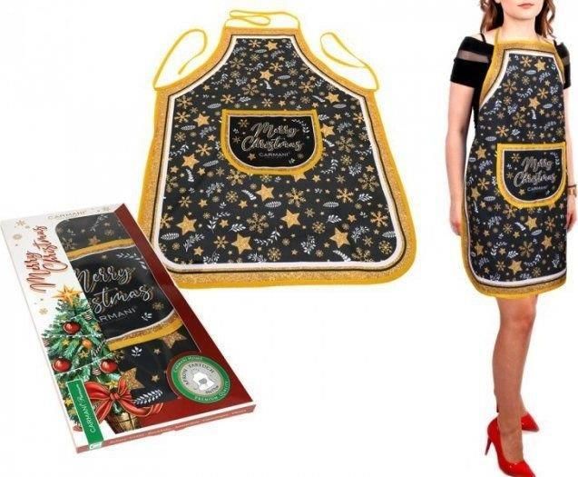 Fartuszek kuchenny - Dekoracja świąteczna CARMANI CARMANI W świątecznym czasie przygotowujemy tyle potraw, że fartuszek kuchenny to zdecydowanie potrzebna rzecz. Tym bardziej fartuszek ozdobiony w piękne, świąteczne wzory doda każdemu domu bożonarodzeniowego klimatu. Kolekcja: kolekcja "Boże Narodzenie w domu Carmani" Rozmiar: 77x59cm Opakowanie: prezentowe wysokiej jakości Podgrupa: Boże Narodzenietekstylia Tematyka: boże narodzenie null null