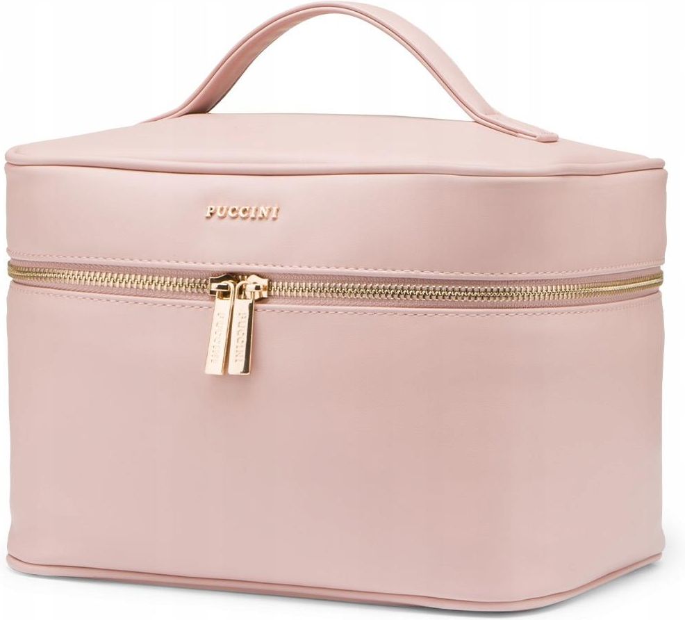 Marka PUCCINI to polska firma z ponad dwudziestoletnią tradycją. Kupując na tej aukcji, otrzymasz wyłącznie oryginalny towar, prosto od producenta. PUCCINI poleca: Duża kosmetyczka różowa Kosmetyczka z kolekcji Fashion Collection charakteryzuje się klasyczną formą z efektownym designem, które z pewnością zadowolą niejednego miłośnika podróży. Model wykonany jest z odpornej, wysokogatunkowej skóry ekologicznej. Lekki, a zarazem pojemny fason idealnie sprawdzi się o każdej porze roku. Pojemne wnętrze kosmetyczki zostało wyścielane łatwym w czyszczeniu materiałem z poliestru. Ponadto w środku znajdziemy funkcjonalną kieszeń na drobiazgi zamykaną na suwak. Akcesorium można przenosić w dłoni za pomocą wygodnego uchwytu. Przód kosmetyczki zdobi gustowne logo PUCCINI. Wszystkie metalowe elementy są w kolorze złota.
