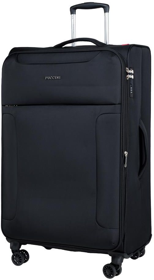 Duża walizka PUCCINI EM-50950 A 1 - czarna. Każda dłuższa podróż wiąże się z zabraniem ze sobą większej ilości rzeczy, do których potrzebna będzie pojemna walizka, którą z łatwością i bez trudu będzie można przenieść. Dlatego też zachęcamy Państwa do zapoznania się z walizką marki Puccini EM-50950 1 z kolekcji Perugia. Budowa: walizka na czterech kołach, dwustopniowo wysuwana rączka, miękkie uchwyty na górnej i bocznej powierzchni walizki, na frontowym panelu są dwie kieszenie (większa i mniejsza) zapinane na suwak, w komorze głównej pasy zapobiegające przesuwaniu się garderoby, na wewnętrznej stronie klapy - duża kieszeń siatkowa, możliwość poszerzenia walizki, zamek szyfrowy, z tyłu walizki wysuwany wizytownik adresowy, stopki ochronne na boku walizki, wnętrze walizki wyściełane jest logowanym materiałem z poliestru, wymiary walizki: 79x48x29cm (+- 1cm), waga: 3,3kg, pojemność: 98,8 l. Kolekcja Perugia Najnowsza kolekcja miękkich walizek wykonana z trwałego i łatwego w czyszczeniu materiału oraz konserwacji materiału - superlekkiego poliestru, a to gwarantuje komfort użytkowania, bez względu czym będziesz podróżować pociągiem, samochodem czy samolotem. Walizki z tej kolekcji występują w trzech rozmiarach: dużym, średnim i małym. Wyróżnia ją to, że duża i średnia walizka posiada możliwość poszerzenia jej o ok. 20% przy pomocy zaledwie jednego ruchu czyli otwarcia zamka.Walizki występują w trzech stonowanych, ponadczasowych kolor: czarnym, czerwonym i granatowym dzięki czemu świetnie sprawdzą się również podczas podróży biznesowych. Walizki osadzone są na czterech, obrotowych o 360 stopni kółkach, dzięki czemu prowadzenie walizek jest niezwykle łatwe. Jest to produkt przeznaczony do transportu dużej ilości garderoby, dlatego też sprawdzi się idealnie w dłuższych podróżach. Zaletą produktu jest materiał, z którego go wykonano - ultra lekki poliester dzięki czemu walizka jest jedną z najlżejszych dostępnych na rynku w tym gabarycie. Wysuwana rączka, regulowana również ułatwi transport bagażu. W przypadku, gdy nawierzchnia nie pozwoli na przemieszczenie walizki na kołach, producent zastosował trwały uchwyt (góra i bok walizki), który umożliwi przeniesienie bagażu. W środku znajdują się 1 komora główna wyposażona w pasy zapobiegające przesuwaniu się bagażu. Po drugiej stronie znajduje się przeźroczysta kieszeń na zamek, gdzie z powodzeniem możesz przechować dokumenty by mieć porządek w walizce. Walizka wyposażona jest w pasy zapobiegające przemieszczaniu się rzeczy oraz dodatkową kieszeń na froncie, zapinaną na suwak. Model ten posiada zamek szyfrowy, który jest zabezpieczeniem przed kradzieżą tego, co znajduje się w środku. Puccini Puccini jest firmą o wieloletniej tradycji. Od lat zaskakuje efektownym designem swoich produktów bagażowych i nie tylko.Produkuje najwyższej jakości bagaż podróżny i ekskluzywną galanterię skórzaną. Do tworzenia swoich produktów wykorzystuje materiały najwyższej jakości. Niezwykle urozmaicone wzornictwo, perfekcja wykonania przy zastosowaniu zasad ergonomii oraz wysublimowany smak to gwarancja powodzenia każdego produktu Puccini.