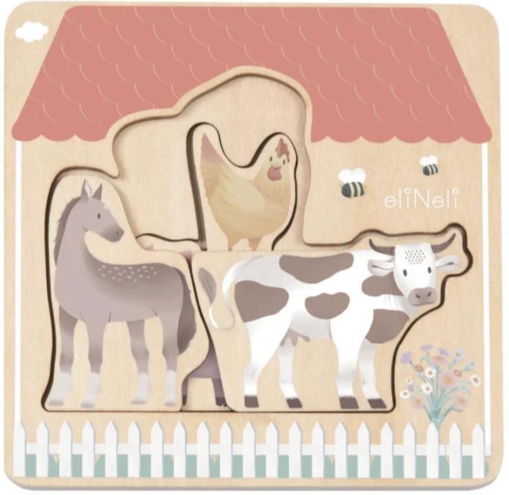 eliNeli Wooden Puzzle Farm, 7 szt., Zabawki interaktywne dla dzieci