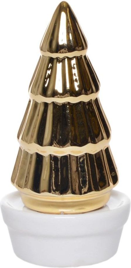Choinka złota w białej doniczce średnia Stan: Nowy Wymiary: 5X5X10CM Materiał: ceramika Kolor: biało-złoty