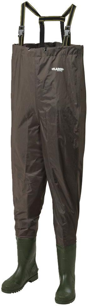 Wodery, spodniobuty wędkarskie FLADEN wykonane z wytrzymałego PVC. Solidne kalosze z ryflowaną podeszwą i szelki z klamrami szybkiego zapinania, idealne na wyprawę na ryby. Solidne kalosze Szelki z klamrami do szybkiego zapinania Z mocnego PVC ROZMIAR: 47