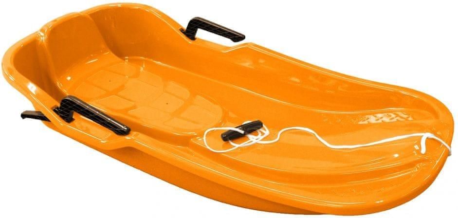Sanki Hamax Sno Glider pomarańczowe 504105 Nowoczesne sanki Hamax Sno Glider zapewniają świetną i bezpieczną zabawę podczas zimowych zjazdów z okolicznych górek i stoków. Lekka konstrukcja sanek wyposażona została w boczne uchwyty, które służą do hamowania i sterowania. Wyprofilowana forma z szerokim siedziskiem. Sznurek do ciągnięcia sanek.Wysokiej jakości tworzywo sztuczne odporne na zimno. Pomarańczowy kolor. Dane techniczne: · Boczne uchwyty do sterowania i hamowania. · Szerokie siedzisko. · Lekka konstrukcja. · Certyfikat CE · Długość całkowita: 90 cm · Materiał: odporny na zimno polietylen wysokiej gęstości (HDPE) · Zalecane maksymalne obciążenie: 60 kg · Zalecany minimalny wiek: 4 lata