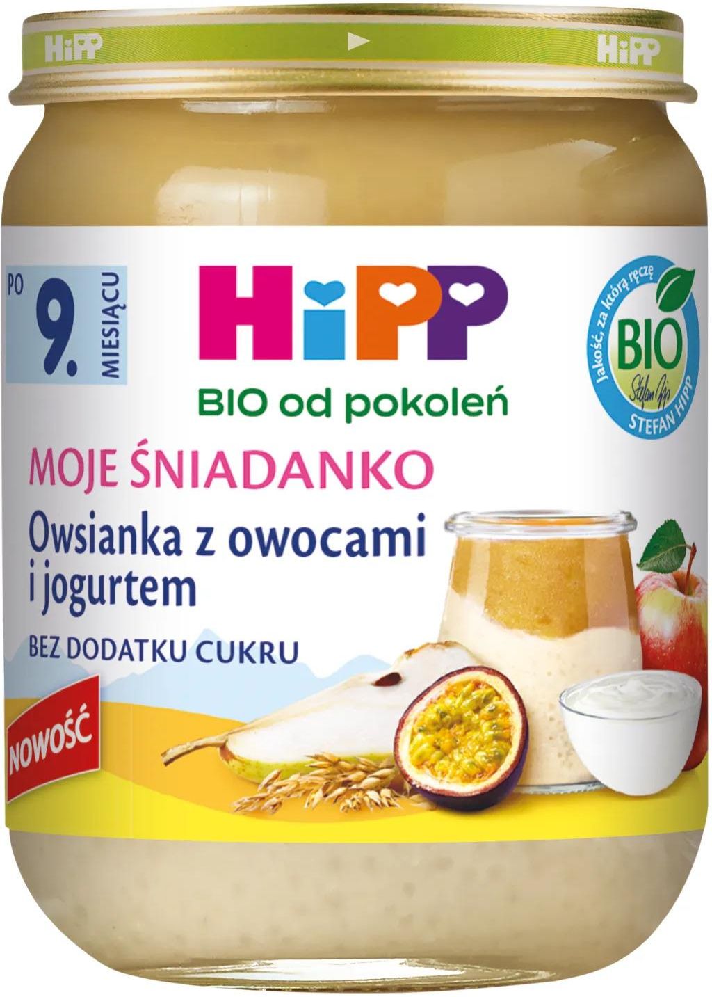 Hipp Bio od pokoleń, Owsianka z owocami i jogurtem to środek spożywczy, przeznaczony dla dzieci powyżej 9. miesiąca życia. Produkt zawiera płatki owsiane, owoce oraz jogurt. Można go podawać jako samodzielny posiłek lub dodatek do diety dziecka. Przygotowanie jest proste i szybkie. Składniki są starannie dobrane, aby spełniały potrzeby żywieniowe najmłodszych. Produkt należy przechowywać w odpowiednich warunkach.
