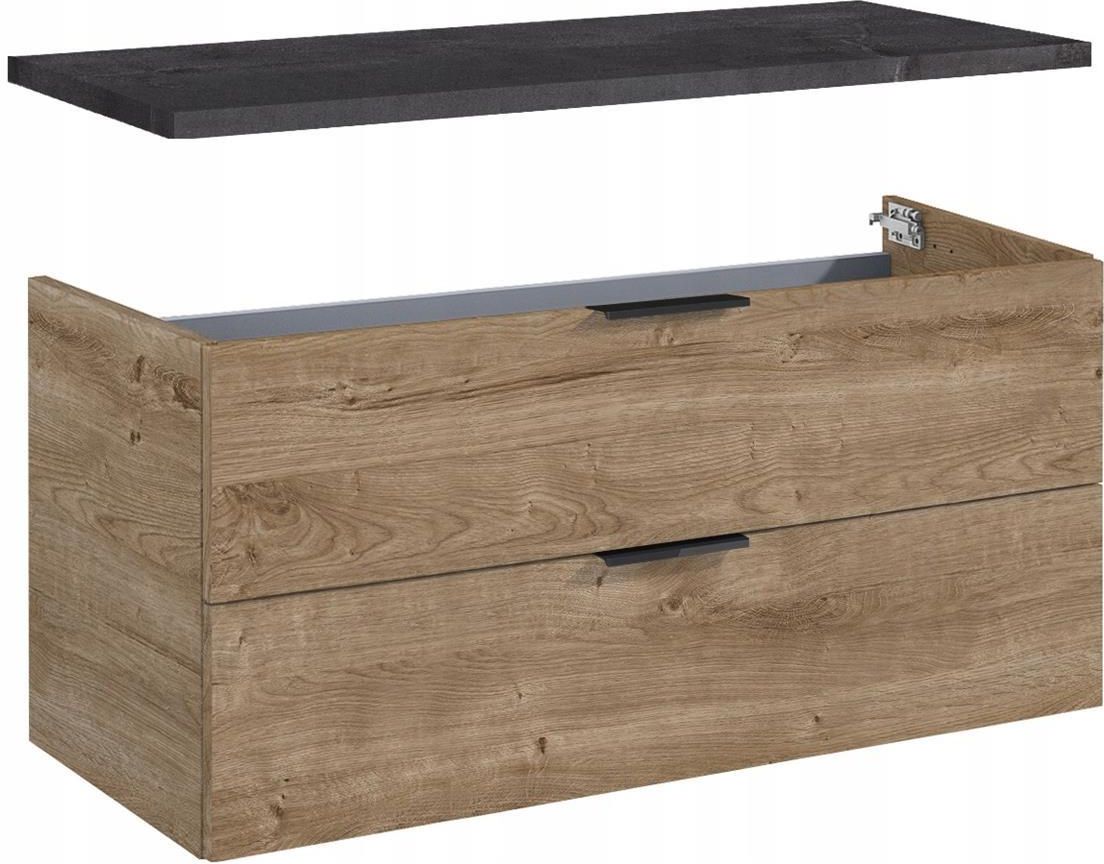 PRZEDMIOTEM SPRZEDAŻY JEST KOMPLET SZAFKA ŁAZIENKOWA Z BLATEM DĄB SZARY ŁUPEK FRAME 100 CM ZESTAW Lakierowane powierzchnie szafek ułatwiają czyszczenie i chronią przed wilgocią system Soft Close zapewnia ciche i łagodne zamykanie szuflad. Meble do samodzielnego montażu. Kolor: Dąb + Szary Łupek …