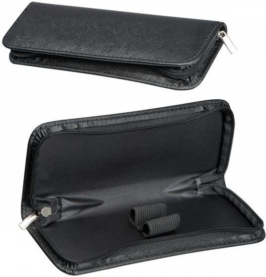 Piórnik RPU ALBACETE Stan: Nowy Materiał: Poliuretan Kolory: Czarny Wymiary (cm): 16,6 x 6 x 2 Waga (kg): 0 Piórnik na dwa przybory piśmiennicze, wykonany z PU pochodzącego z recyklingu, zamykany na zamek.
