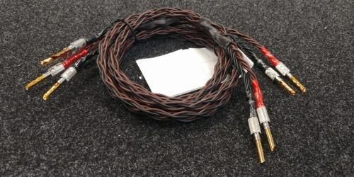 Przewód głośnikowy Single-wire w konfekcji własnej Standard: 2x2 (8 żył skręconych współosiowo, 4 na kanał) długość: 2 odcinki po 1 mb wtyki: Chord przewód bazowy: Kimber Kable 4PR https://www.hfc.com.pl/news/5153,kimber-kable-4pr-i-8pr.html#google_vignette grubość: 2x2,5mm materiał przewodnika: …