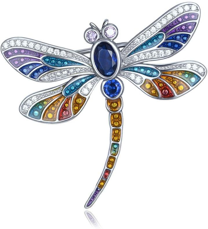 Minet Srebrna broszka ważka z wielobarwnymi cyrkoniami Wejherowo