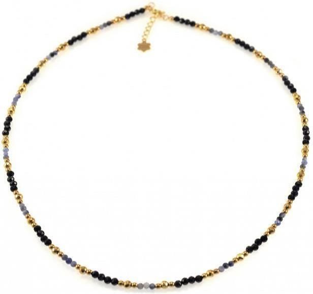 Naszyjnik Sodalit Spinel 925 mba0074 Naszyjnik wykonana ze srebra próby 925, pozłacanego 24 karatowym złotem. Kamień: Sodalit, Spinel i Hematyt Rozmiar kamienia: 4mm Długość: 44 cm Długości do wyboru: 38 cm /42 cm/ 44 cm Zapięcie: klasyczne (federing) Biżuteria ręcznie wykonana, produkt Polski.