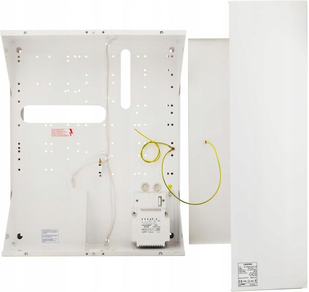 Obudowa natynkowa Pulsar AWO306 do central alarmowych TRP80 Satel Grade 3 Produkty marki Pulsar to nowoczesne rozwiązania zaprojektowane z myślą o skutecznej i wygodnej kontroli dostępu do domu, firmy czy posesji. Oferują wysoką jakość, intuicyjną obsługę oraz szeroki wybór akcesoriów. Dzięki nowoczesnej technologii i możliwościom rozbudowy, systemy można łatwo dopasować do indywidualnych potrzeb użytkownika, zapewniając bezpieczeństwo i komfort każdego dnia. Główne zalety Tamper otwarcia obudowy – układ zabezpieczający, który reaguje na próby nieautoryzowanego otwarcia obudowy, zwiększając poziom ochrony systemu. Zamykanie – skręcanie – trwała i niezawodna metoda zamykania, zapewniająca solidne przyleganie elementów obudowy oraz ochronę przed przypadkowym otwarciem. Dystans od ściany – konstrukcja obudowy umożliwia montaż z zachowaniem przestrzeni od ściany, co poprawia cyrkulację powietrza i bezpieczeństwo instalacji. Zgodność z normą EN50131-6 – urządzenie spełnia wymagania europejskiej normy dotyczącej zasilaczy w systemach alarmowych, co potwierdza jego wysoką jakość i bezpieczeństwo użytkowania. Montaż wewnętrzny z ochroną przeciążeniową – zasilacz przeznaczony jest do pracy ciągłej w zamkniętych pomieszczeniach o standardowej wilgotności i temperaturze. Pulsar AWO306S Obudowa natynkowa wykonana z metalu, przeznaczona do instalacji central alarmowych serii INTEGRA oraz modułów firmy SATEL w różnych układach, do zastosowania wewnątrz budynków (stopień ochrony IP20). Konstrukcja pozwala na montaż akumulatora o pojemności do 28Ah/12V oraz zawiera wbudowany transformator TRP o mocy 80VA z napięciami 16V, 18V i 20V. Dla zwiększenia bezpieczeństwa wyposażona została w podwójne zabezpieczenie antysabotażowe – chroni zarówno przed otwarciem, jak i oderwaniem obudowy od powierzchni montażowej. Posiada dodatkowy dystans 20 mm od ściany, ułatwiający prowadzenie okablowania. Produkt spełnia wymagania klasy bezpieczeństwa Grade 3 zgodnie z normą EN 50131. Wymiary Zewnętrzne: W=550mm, H=455mm, D+D1 =175+20 [+/-2 mm] Zewnętrzne czołówki: W1 =555mm, H1 =460mm [+/-2 mm] Specyfikacja techniczna Marka: Pulsar Model: AWO306S Zasilanie wejściowe: 230V AC ±15%, 50Hz Wyjście zasilania: 16V AC / 5A lub 18V AC / 4,5A lub 20V AC / 4A (tolerancja: -5%, +15%) Transformator: TRP 80VA 16V/18V/20V w obudowie PC/ABS, UL94-V0, IP30 Obciążalność wyjścia TAMPER: 0,5A przy 50V DC Zabezpieczenie antysabotażowe: wspornik montażowy z tamperem w obudowie Dystans od ściany: 20 mm Przeznaczenie: do użytku wewnętrznego Materiał: blacha stalowa DC01, grubość 1,0 mm Zabezpieczenie antykorozyjne: tak Konstrukcja obudowy: drzwiczki i dno w kształcie litery „C”, bez zawiasów Kolor: RAL 9003 Sposób zamykania: skręcana Klasa środowiskowa: II Temperatura pracy: -10°C do +40°C Miejsce na akumulator: 28Ah / 12V Waga: netto 9,33 kg (±0,1 kg), brutto 9,65 kg (±0,1 kg) Stopień szczelności: IP20 Deklaracje: CE, zgodność z CLC/TS 50131-1 Stopień 3 Przeznaczenie do central SATEL Centrale: Integra24, Integra32, Integra64, Integra64+, Integra128, Integra128+, Integra256+, Versa Plus, Versa IP Moduły: INT-E, INT-ADR, INT-GSM, INT-KNX-2, INT-FI, INT-VG, INT-AV, INT-RS Plus (max. 15szt.) INT-PP, INT-O, INT-R, INT-VMG, ETHM-1 Plus (max. 5szt.) ACCO-KP, ACCO-KPWG (max. 1 szt.) Dokumentacja wskazuje, jakie typy urządzeń są kompatybilne z daną obudową, jednak nie precyzuje ich liczby. Liczba możliwych do zainstalowania elementów zależy od ich gabarytów oraz sposobu rozmieszczenia wewnątrz obudowy.