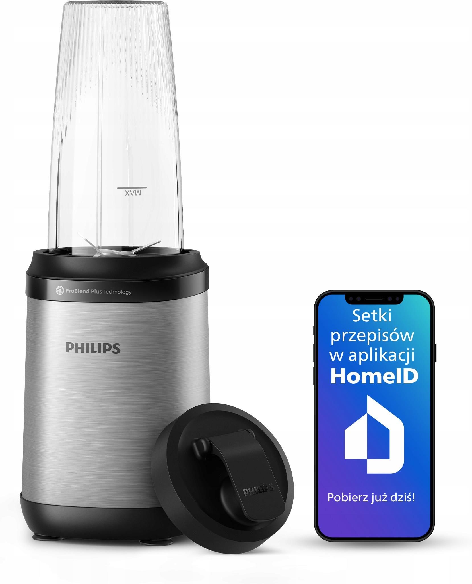 PHILIPS Seria 5000 Blender HR2764/00 Miksuj bez ograniczeń. Wzbogać swój kulinarny świat dzięki blenderowi Philips z serii 5000. Przygotowuj najlepsze mieszanki nawet z przepisów z mrożonymi owocami, kostkami lodu i orzechami. Elegancki wygląd na blacie kuchennym. Odłączane części, które można myć w zmywarce, ułatwiają czyszczenie. Najlepsze efekty blendowania dzięki technologii ProBlend Plus Silnik, ostrza i pojemnik zaprojektowano tak, aby jak najlepiej współpracowały ze sobą i umożliwiały doskonałe blendowanie nawet kostek lodu, orzechów i mrożonych owoców. Silnik ProBlend Plus o mocy 800 W zapewnia blendowanie bez wysiłku Silnik ProBlend Plus umożliwia szybkie mieszanie składników i łatwe blendowanie. Ostrza ProBlend Plus zapewniają jedwabiście gładką konsystencję Ostrze ProBlend Plus miażdży i blenduje najtwardsze składniki, nadając im delikatną konsystencję dzięki 6 długim, grubym i ostrym ostrzom. Pojemnik ProBlend Plus zapewnia doskonałe mieszanie składników Pojemnik ProBlend Plus wypycha składniki z powrotem do obiegu dzięki specjalnym żebrom, dlatego wszystkie są zawsze równomiernie blendowane. Pojemnik o pojemności 700 ml z pokrywką do przechowywania lub podróży Blenduj w podróży dzięki poręcznemu pojemnikowi o pojemności 700 ml. Przygotuj swój codzienny koktajl, a następnie załóż szczelną pokrywkę i zabierz go ze sobą. Możesz też przechować go w lodówce na później. Pojemnik jest wykonany z tworzywa Tritan firmy Eastman, w 100% wolny od BPA, odporny na stłuczenia i nadaje się do mycia w zmywarce. Elegancka, oszczędna konstrukcja pasuje do każdej kuchni Dodaj stylowy akcent do swojej kuchni. Oszczędna konstrukcja ze stali nierdzewnej i odłączane części ułatwiają przechowywanie.