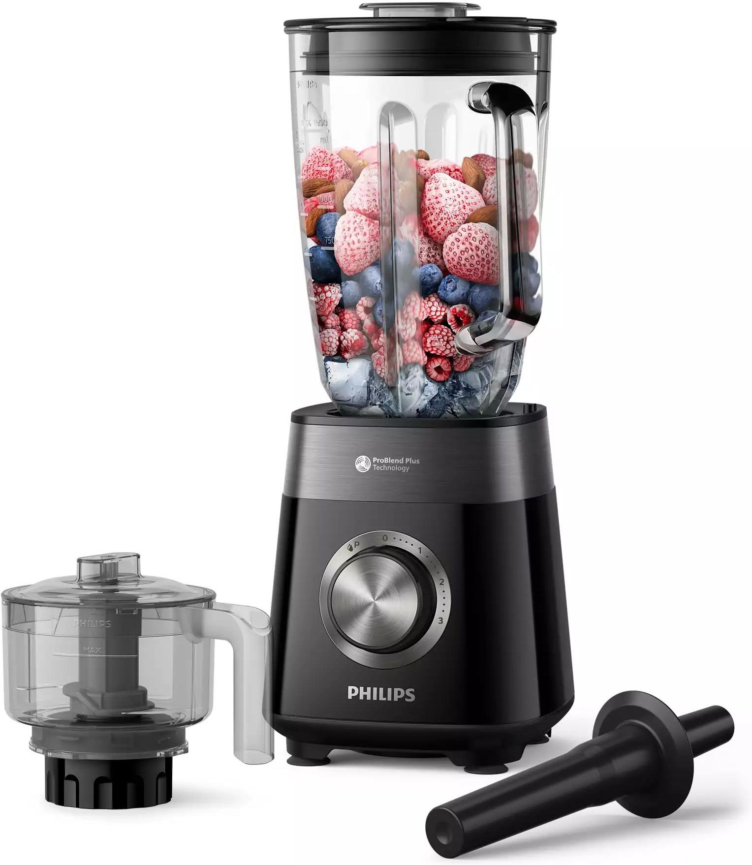 PHILIPS 5000 Series Mixér HR3032/00 Technologia ProBlend Plus Dedykowane ustawienie ułatwiające czyszczenie ręczne Aplikacja HomeID Silnik ProBlend Plus o mocy 1200W Kompaktowy design Moc silnika 1200 W Teraz, dzięki silnikowi o mocy 1200 W, bez trudu zmienisz twarde składniki, takie jak lód, …