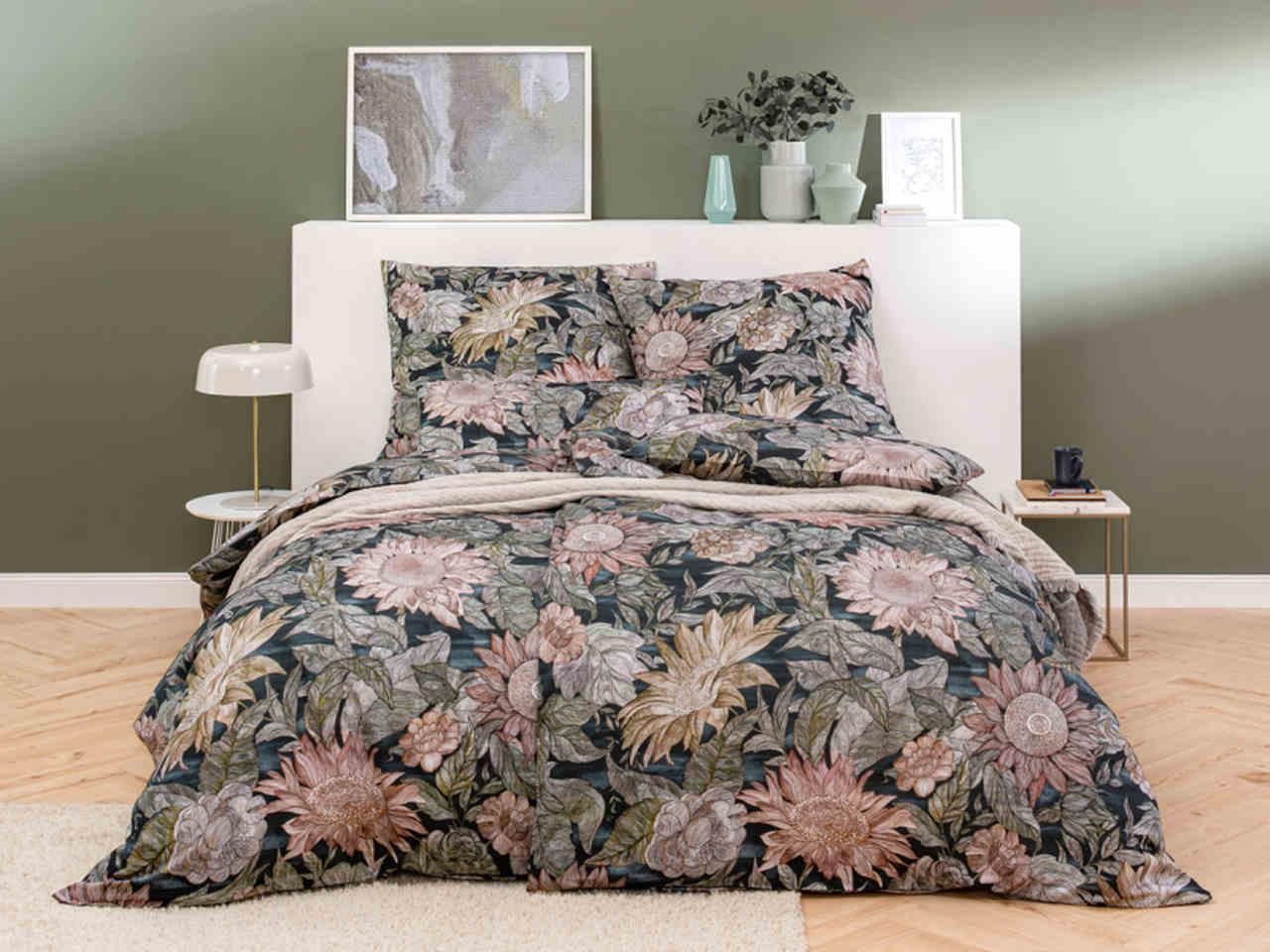 Pościel Estella Willa w kolorze 625 z mako-satyny Pościel w kwiatowy wzór w pięknych kolorach, inspirowany twórczością Vincenta van Gogha. Duże barwne słoneczniki pięknie wyróżniają się na ciemnym tle. Pościel satynowa od Estella jest szczególnie przyjemna i miła dla skóry. Specjalna technologia …
