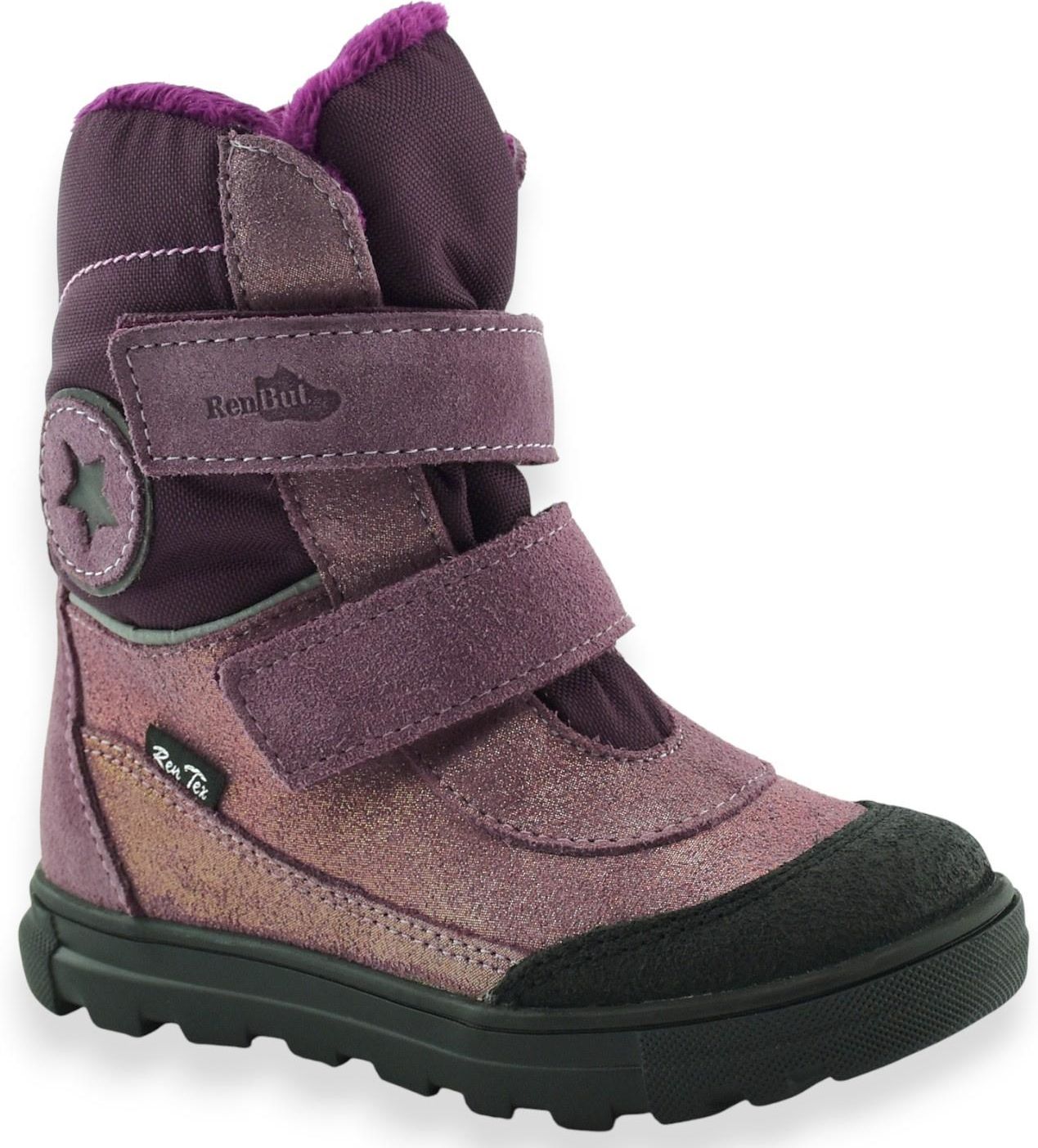 Śniegowce RenBut dla dziewczynki zapewniają ciepło, wygodę i swobodę ruchu. Wykonane z oddychającej skóry w połyskującym kolorze śliwki, chronią przed chłodem i wilgocią. Wzmocnione noski gwarantują trwałość i długie użytkowanie.