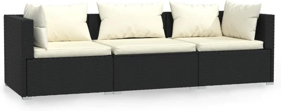 Sofa Z Poduszkami Czarna Polirattan 3-Osobowa Wejherowo