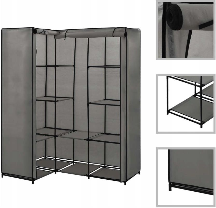 Praktyczna szafa stanowi idealne rozwiązanie dla przechowywania ubrań i butów. Charakteryzuje ją solidna żelazna rama, dzięki której szafa na ubrania jest wyjątkowo wytrzymała. W porównaniu ze zwykłą szafą z tkaniny struktura narożnej szafy jest jeszcze bardziej stabilna. Zajmująca mało miejsca szafa optymalizuje wykorzystanie narożników, a zatem oferuje dużą przestrzeń do przechowywania i możliwość zawieszania, aby zorganizować torby, buty i małe przedmioty w zasięgu ręki. Pokrowiec z zamkiem błyskawicznym chroni ubrania przed brudem i kurzem. Kolor: szary Wymiary: 130 x 87 x 169 cm (szer. x gł. x wys.) Materiał: żelazne rurki + 100% poliester OSTRZEŻENIE: aby zapobiec przewróceniu się produktu, musi on zostać przymocowany do ściany za pomocą dołączonego elementu montażowego Legal Documents: Więcej informacji na temat zabezpieczenia mebli przed przewróceniem można znaleźć tutaj