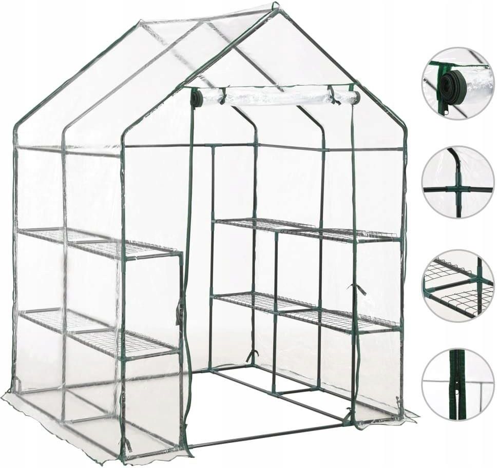 Wydłuż sezon wegetacji roślin za sprawą naszej szklarni. Świetnie posłuży zarówno doświadczonym, jak i początkującym ogrodnikom! Szklarnię wykonano z odpornej na rdzewienie stalowej ramy z pokryciem z PVC, co zapewnia jej wyjątkową trwałość oraz długi czas użytkowania. Wyposażona w 8 wykonanych z drutu półek (po 4 z każdej strony), ta szklarnia zapewnia dużo miejsca na twoje kiełkujące rośliny, kwitnące kwiaty oraz świeże zioła i warzywa. Przezroczysta, plastikowa osłona pozwala na docieranie promieni słonecznych do kwiatów i roślin, a także na ciągłe doglądanie ich. Zaprojektowana z zamykanymi na zamek błyskawiczny drzwiami zwijanymi, zapewnia dobrą cyrkulację powietrza i łatwy dostęp do roślin. Szklarnia jest łatwa do rozstawienia i złożenia, nie są do tego potrzebne specjalne narzędzia, można ją także transportować i przechowywać po zakończeniu sezonu. Kolor: zielona rama i przezroczysta pokrywa Materiał: malowane proszkowo rurki stalowe + 100% PVC Przezroczyste, odporne na rozdarcia pokrycie Ilość półek: 8 Wymiary całkowite: 143 x 143 x 195 cm (szer. x gł. x wys.) Zamykane na suwak drzwi ułatwiają wchodzenie i wychodzenie