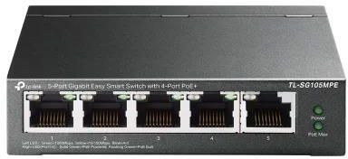 Przełącznik Easy Smart, 5 portów gigabitowych, w tym 4 porty PoE+ 5 portów RJ45 10/100/1000 Mb/s 4 porty PoE+ z obsługą standardów 802.3af/at, zasilanie i przesył danych za pomocą jednego przewodu Do 30 W mocy na każdym z portów PoE Do 120 W łącznej mocy PoE Funkcje monitorowania sieci, …