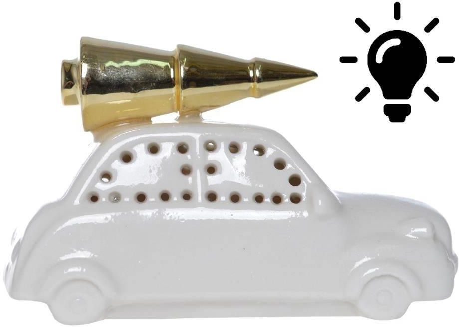 Auto porcelanowe z choinką na dachu podświetlane małe Stan: Nowy