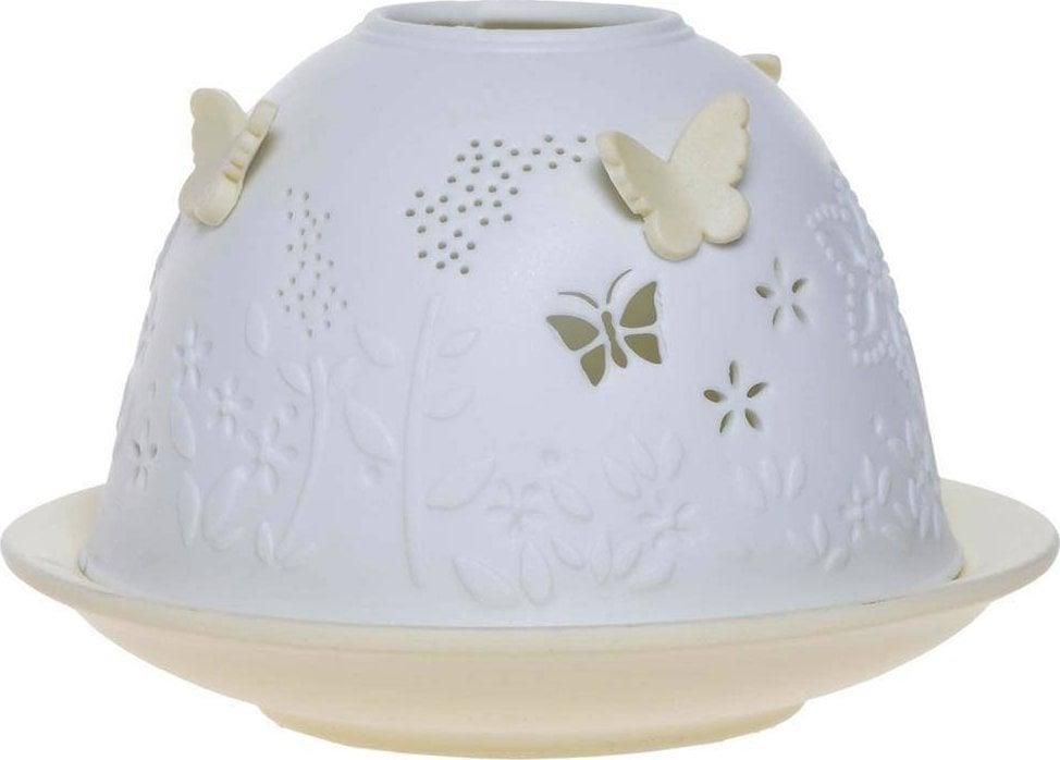 Lampion porcelanowy ażurowy z żółtymi motylkami Stan: Nowy