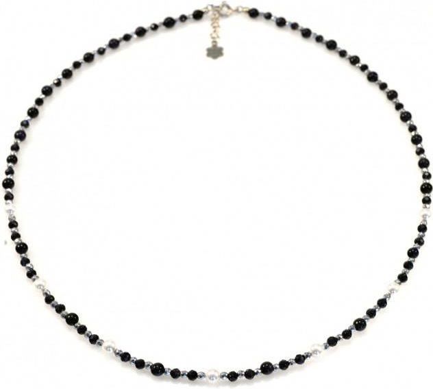 Naszyjnik wykonana ze srebra próby 925, platynowana. Kamień: Noc Kairu, Perła i Hematyt Rozmiar kamienia: 2mm / 3mm Długość: 44 cm Długości do wyboru: 38 cm /42 cm/ 44 cm Zapięcie: klasyczne (federing) Biżuteria ręcznie wykonana, produkt Polski.