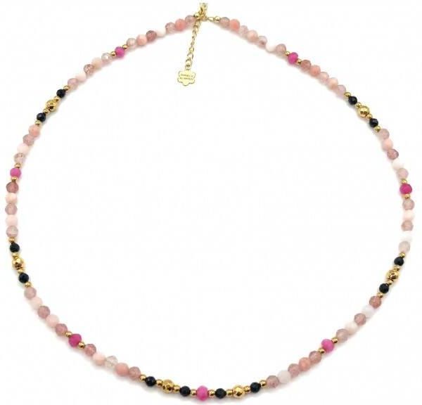 Naszyjnik wykonany ze srebra próby 925, pozłacanego 24 karatowym złotem. Kamień: Opal+ Kwarc+ Turmalin+ Hematyt Rozmiar kamienia: 4/3/2 mm Długość: 44 cm Długości do wyboru: 38 cm /42 cm/ 44 cm Zapięcie: klasyczne (federing) Biżuteria ręcznie wykonana, produkt Polski.