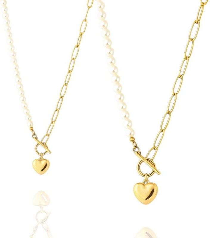 Upominkarnia Naszyjnik stal szlachetna pozłacana 14k złotem, SERCE, perły NST2213 Wejherowo