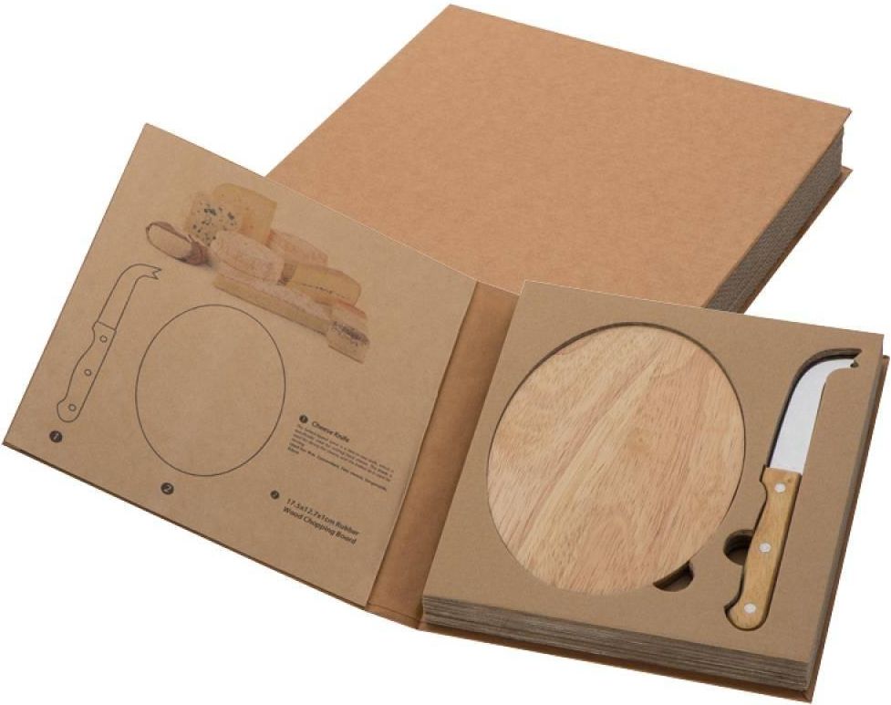 Drewniana deska do serów z nożem wykonanym ze stali nierdzewnej.