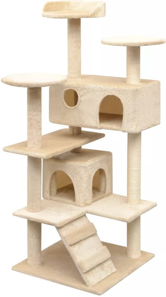 vidaXL Drapak dla kota z sizalowymi słupkami, 125 vidaXL Podaruj swoim kocim przyjaciołom odrobinę luksusu dzięki naszemu bogato wyposażonemu drapakowi! To wielopoziomowe centrum zabaw dla kotów z solidną konstrukcją pokrytą miękkim, wygodnym pluszem to idealne miejsce dla Twoich zwierzaków, gdzie będą mogły drapać, wspinać się, leżeć, chować się i odpoczywać. Twoi koci przyjaciele mogą naostrzyć swoje pazury na słupkach owiniętych w sizalowe sznurki, co zapewnia zdrowy upust ich drapieżnych instynktów. Będą także urządzać sobie gonitwy, przeskakując w górę i w dół po tym centrum zabaw. Kiedy będą miały tego dość, pokochają odpoczynek na wyższych platformach, na których jest lepszy widok. Mogą również chować się w przytulnych domkach, aby móc się zdrzemnąć. Dzięki tym wszystkim funkcjom zabawy drapak dla kotów stanie się ulubionym miejscem Twoich zwierzaków! Kolor: Array Rozmiar: Array Podaruj swoim kocim przyjaciołom odrobinę luksusu dzięki naszemu bogato wyposażonemu drapakowi! To wielopoziomowe centrum zabaw dla kotów z solidną konstrukcją pokrytą miękkim, wygodnym pluszem to idealne miejsce dla Twoich zwierzaków, gdzie będą mogły drapać, wspinać się, leżeć, chować się i odpoczywać. Twoi koci przyjaciele mogą naostrzyć swoje pazury na słupkach owiniętych w sizalowe sznurki, co zapewnia zdrowy upust ich drapieżnych instynktów. Będą także urządzać sobie gonitwy, przeskakując w górę i w dół po tym centrum zabaw. Kiedy będą miały tego dość, pokochają odpoczynek na wyższych platformach, na których jest lepszy widok. Mogą również chować się w przytulnych domkach, aby móc się zdrzemnąć. Dzięki tym wszystkim funkcjom zabawy drapak dla kotów stanie się ulubionym miejscem Twoich zwierzaków! Kolor: beżowy Materiał: drewniana rama + sizalowy sznurek + miękki plusz Wymiary całkowite: 67 x 67 x 125 cm (dł. x szer. x wys.) Wymiary większego domku: 50 x 25 x 21 cm (dł. x szer. x wys.) Wymiary mniejszego domku: 25 x 25 x 21 cm (dł. x szer. x wys.) Wymiary podstawy: 50 x 50 cm (dł. x szer.) Z drabiną, domkami, słupkami do drapania i platformami Materiał: Poliester: 100% Kolor: Array Rozmiar: Array vidaXL
