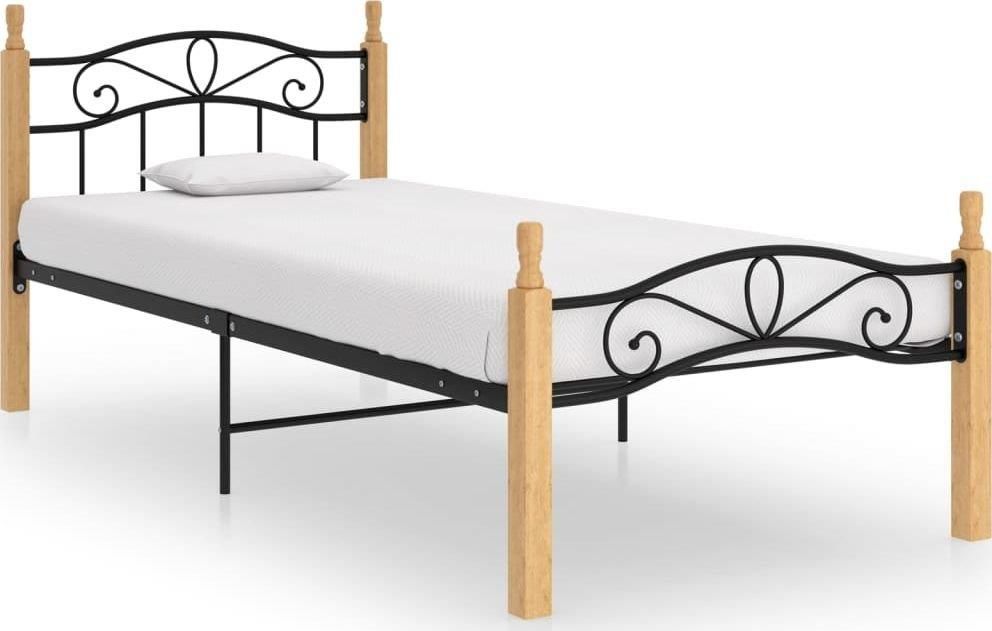 vidaXL Rama Łóżka Czarny Metal I Lite Drewno Dębowe 90X200Cm 8923741 Wejherowo