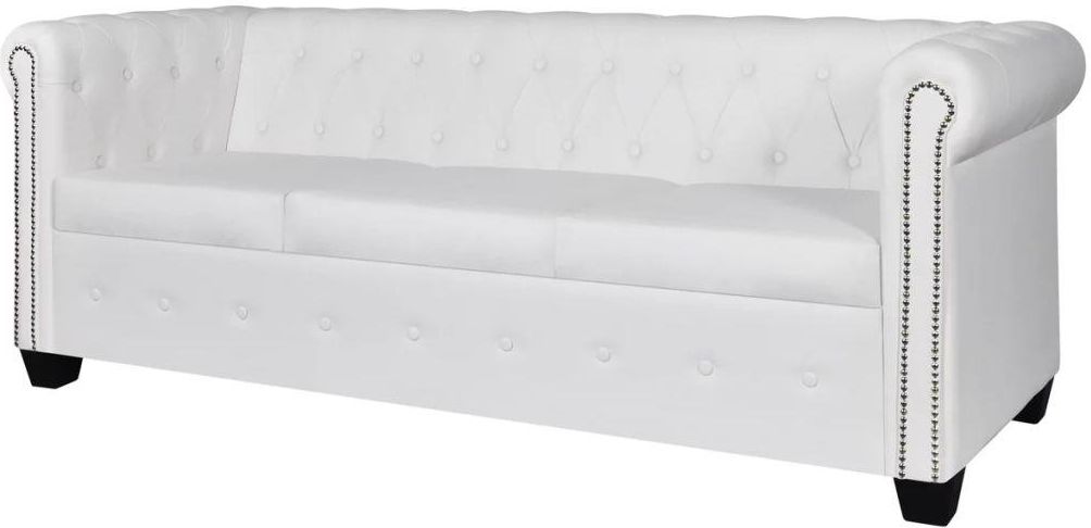 vidaXL Sofa 3-Osobowa W Stylu Chesterfield Sztuczna Skóra Biała Wejherowo