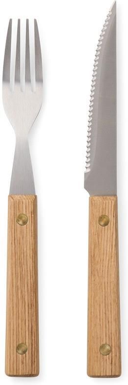 Zestaw 8 sztućców grillowych, design inspirowany skandynawską prostotą, wykonany ze stali nierdzewnej oraz drewna jesionowego z certyfikatem FSC®, 4 ostre noże oraz 4 widelce z wygodnym uchwytem