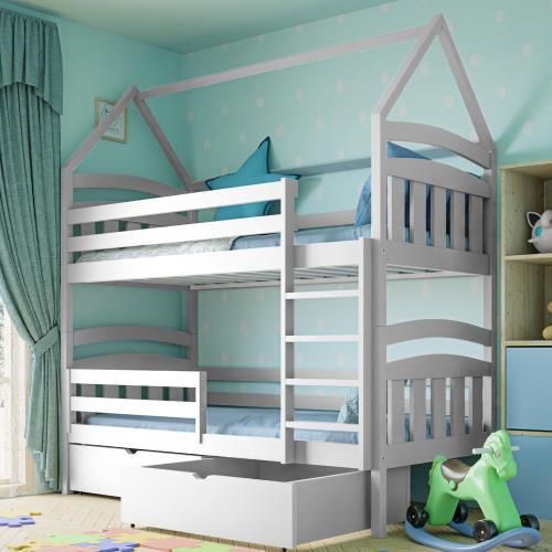 Funkcjonalne i bezpieczne rozwiązanie Łóżko piętrowe domek Sofi to unikalne rozwiązanie, które z pewnością zachwyci każde dziecko. Jego konstrukcja w kształcie domku, z uroczo zaprojektowanym daszkiem, tworzy magiczną przestrzeń do zabawy i snu. Solidne barierki zapewniają bezpieczeństwo na górnym poziomie, eliminując ryzyko upadku. To łóżko nie tylko spełnia funkcję spania, ale również staje się centralnym punktem dziecięcego pokoju, inspirując do wielu godzin kreatywnej zabawy. Praktyczne rozwiązania dla oszczędności miejsca Łóżko piętrowe domek Sofi to idealne rozwiązanie do mniejszych przestrzeni. Dzięki dwóm poziomom spania, zapewnia komfortowe miejsce do snu dla dwojga dzieci, jednocześnie oszczędzając miejsce w pokoju. Dodatkowo, łóżko można wyposażyć w opcjonalne szuflady, które są doskonałe do przechowywania pościeli, zabawek czy ubrań. Szuflady te pomagają utrzymać porządek, maksymalizując wykorzystanie dostępnej przestrzeni. Wysoka Jakość i Trwałość Wykonane z wytrzymałej płyty wiórowej laminowanej, łóżko piętrowe domek Sofi charakteryzuje się dużą trwałością i solidnością. Jego estetyczne wykończenie w kolorach pasujących do każdego wnętrza sprawia, że jest nie tylko funkcjonalnym, ale i eleganckim elementem wyposażenia pokoju dziecięcego. Opcjonalne szuflady to dodatkowy atut, który zwiększa funkcjonalność łóżka, umożliwiając przechowywanie różnorodnych przedmiotów w jednym miejscu. Uwaga: Cena dotyczy samego stelaża, bez materaca!