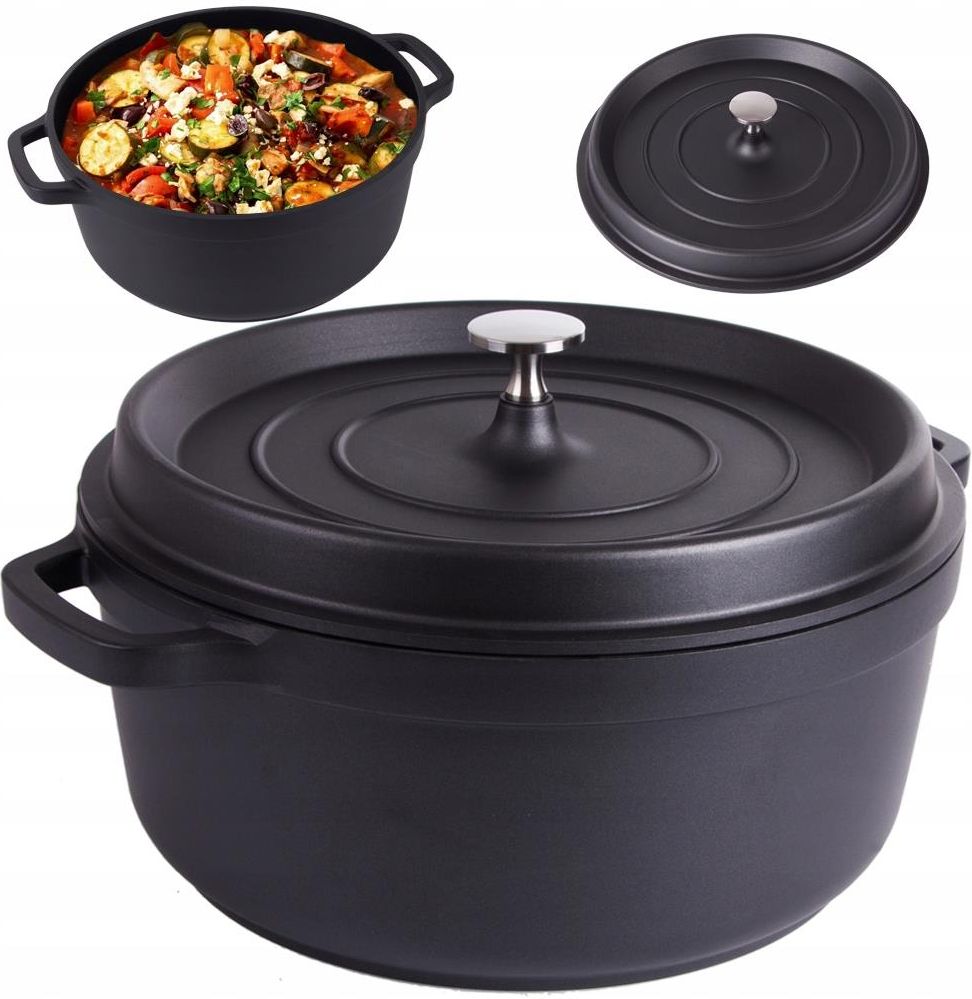 GARNEK BRYTFANNA POKRYWKA 6,6L INDUKCJA ALUMINIUM Wspaniały garnek z pokrywką o pojemności 6,6 litra wykonany z z wysokiej jakości stopu aluminium, które zostało poddane procesowi ciśnieniowego odlewu. Garnek jest idealny do gotowania na kuchni indukcyjnej, gazowej, halogenowej, ceramicznej i elektrycznej. Ten solidny i elegancki garnek to niezastąpione narzędzie w Twojej kuchni, które ułatwi Ci przygotowywanie pysznych potraw dla Twojej rodziny i przyjaciół. Ten garnek to perfekcyjne rozwiązanie do klasycznego gotowania jak i do pieczenia. Ergonomiczne uchwyty zapewniają wygodne i pewne trzymanie garnka podczas gotowania. Specjalne właściwości indukcyjne umożliwiają szybkie i skuteczne gotowanie na kuchni indukcyjnej. Ta Brytfanna będzie doskonałym dodatkiem do Twojej kuchni, niezależnie od tego, czy gotujesz dla siebie, dla rodziny czy też przyjmujesz gości. Jego pojemność umożliwia przygotowywanie różnorodnych dań, od zup i gulaszów po pieczenie mięsa czy warzyw. Wykonany z aluminium zapewnia równomierne rozprowadzanie ciepła, co przekłada się na doskonałe rezultaty kulinarne. SPECYFIKACJA TECHNICZNA: ✅ Kod produktu: 07169 ✅ Wysoka jakość wykonania ✅ Odlew aluminium ✅ Elegancki wygląd ✅ Powłoka nieprzywieralna non-stick ✅ Wyposażony w solidną pokrywkę ✅ Pojemność: 6,6L ✅ Do piekarnika ✅ Do kuchenki: indukcyjnej, gazowej, elektrycznej, ceramicznej i halogenowej. ✅ Szybkie nagrzewanie ✅ Kolor: czarny WYMIARY: ✅ Wysokość garnka: 12,5cm ✅ Wysokość całkowita z pokrywą: 20cm ✅ Średnica zewnętrzna garnka: 29,5cm ✅ Średnica wewnętrzna garnka na górze: 28,5cm ✅ Średnica pola grzewczego: 25,5 cm ✅ Długość rączki: 3cm ✅ Średnica pokrywy: 29,5cm ✅ Średnica garnka z rączkami: 35,5cm ZESTAW ZWIERA: ☑️ Fabrycznie nowy garnek ☑️ Pokrywka ☑️ Oryginalne opakowanie