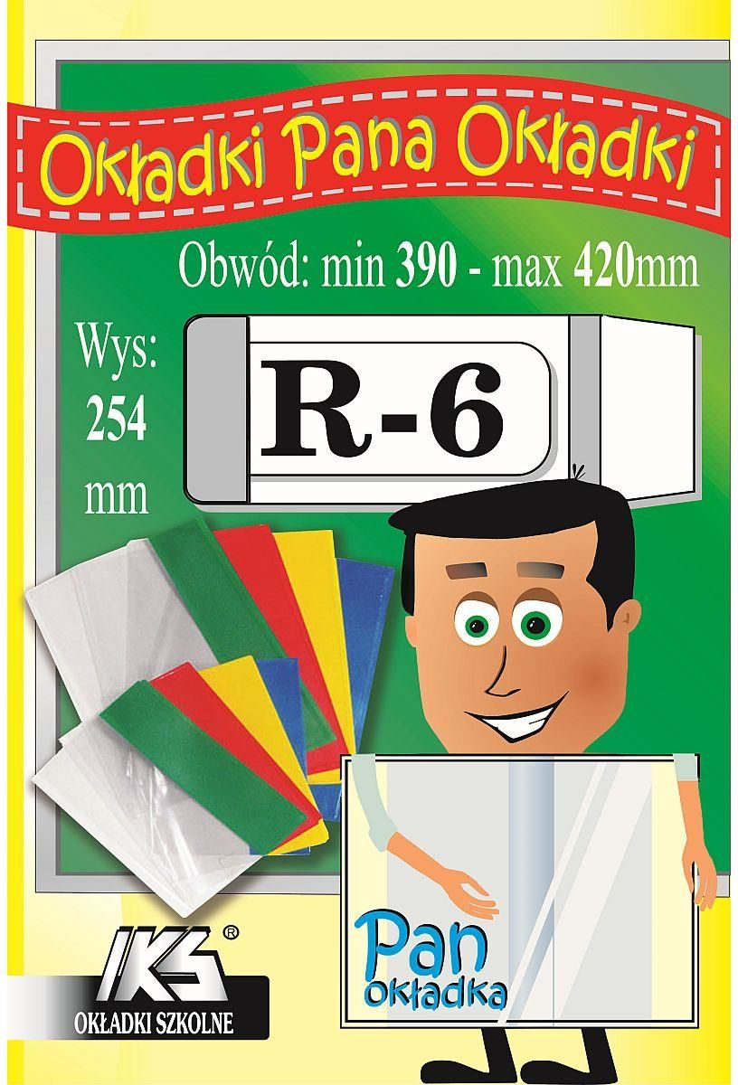 Okładki książkowe regulowane R-6 Wys. 254 mm obwód od 390 do 420 mm Wykonane z wysoko przeźroczystej folii o grubości 0,12 mm, paski w boczne 6 kolorach (mix). Opakowanie sprzedażowe zawiera 50 szt. Każda okładka z nadrukowanym kodem kreskowym